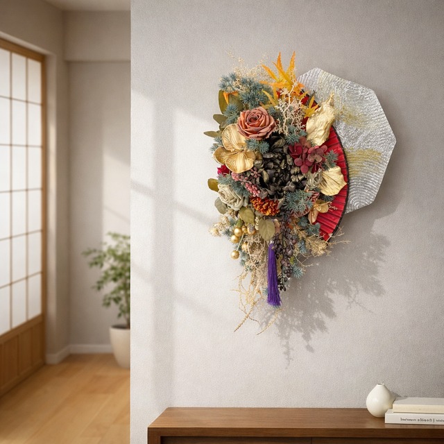 和モダン壁飾り|ドライスタイル迎春オブジェ 扇と彩る 上質な通年和インテリア