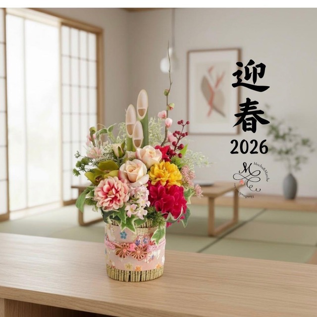 和モダン門松 M|可憐な花々と竹が奏でる、モカアンドマルシェの迎春アレンジアーティフィシャルフラワー