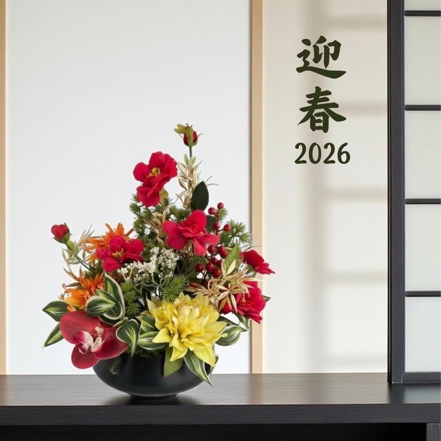 迎春アレンジメント 特大|新春の華やぎを飾る和モダンフラワー|正月飾り 造花