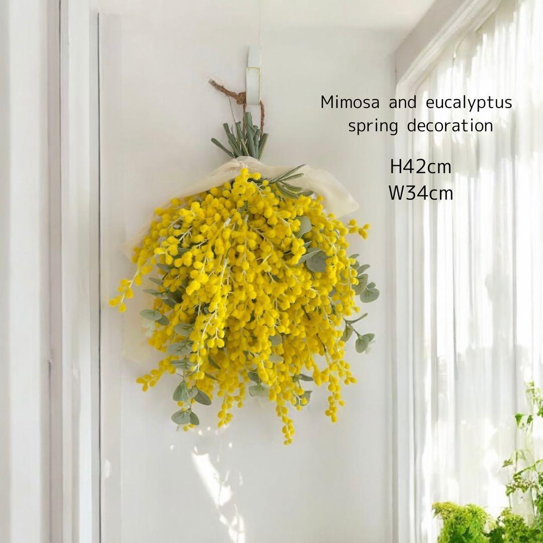 春色 ミモザとユーカリのスワッグ アーティフィシャルフラワー 春リース 造花