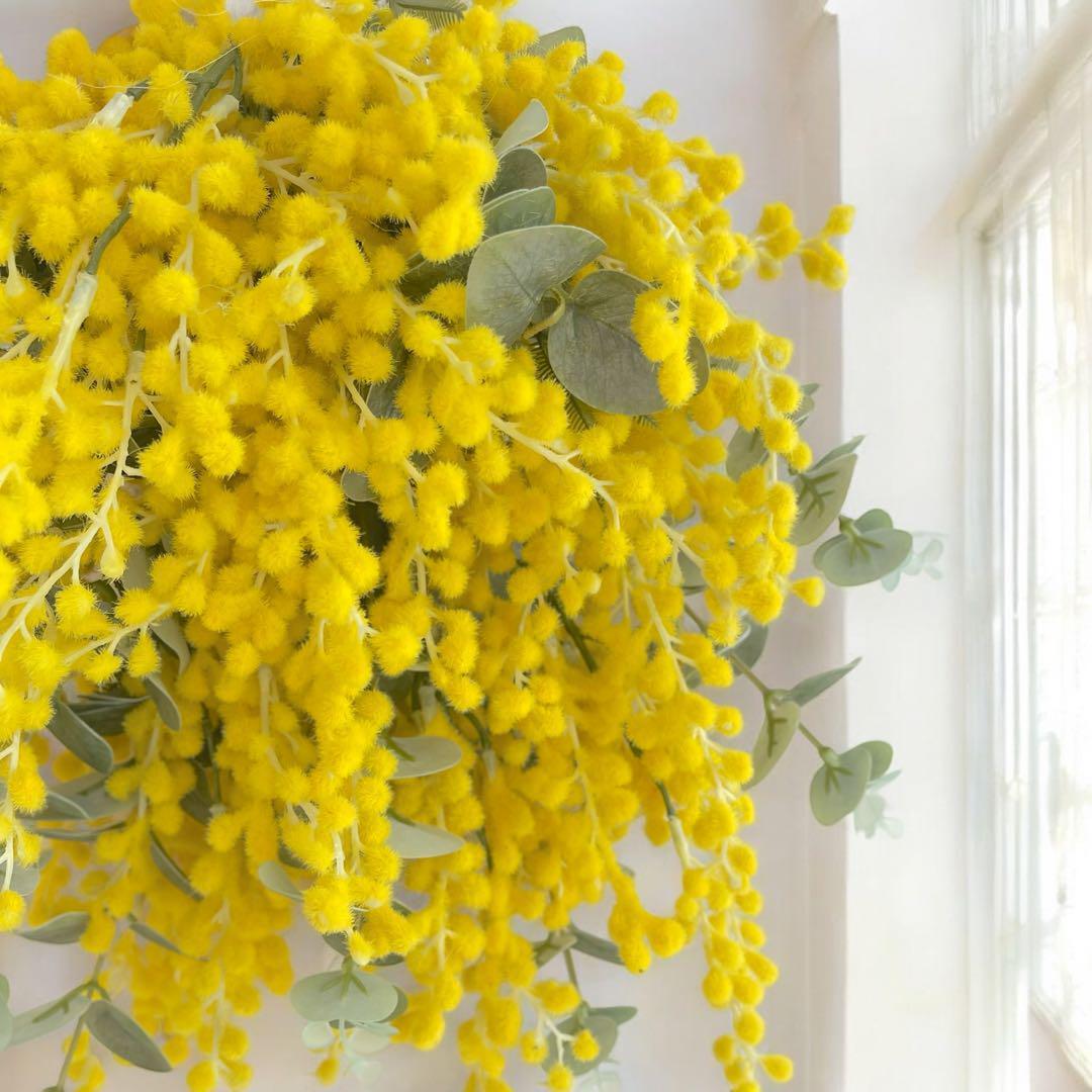 ふわふわとした可愛らしいミモザが、まるで春の日差しを閉じ込めたかのようにお部屋を明るく彩る爽やかなスワッグです。