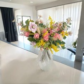 ふわりと優しい風にそよぐような、ミモザやクリスマスローズや咲き誇るピンクローズの花々たち◌ ͙❁˚