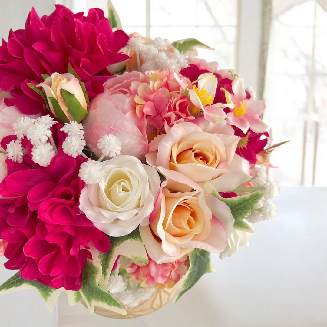 アーティフィシャルフラワーを使用しているため、枯れることがなく美しい状態を長く保てるのも魅力。
