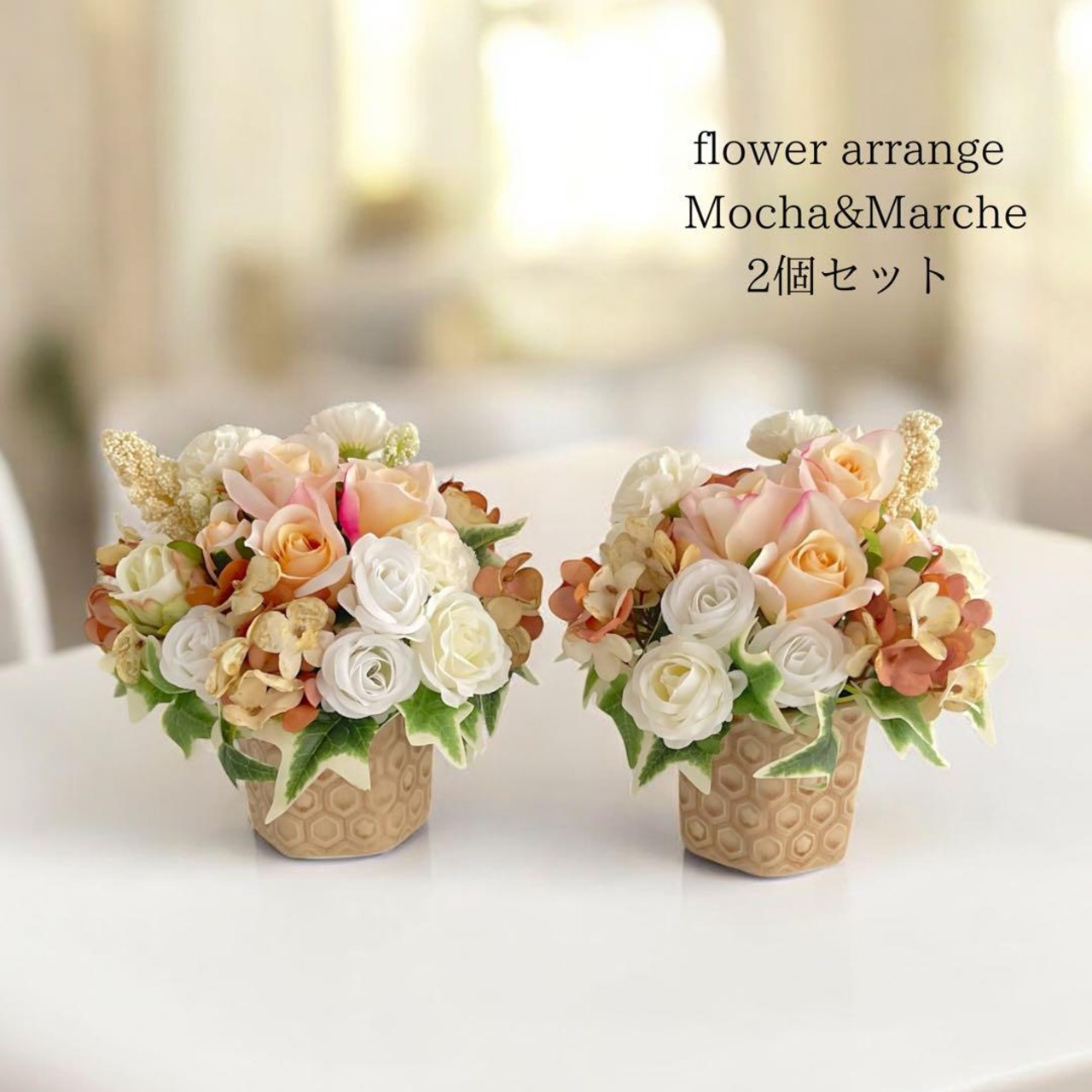 こちらは、淡いオレンジとホワイトローズを基調にした仏花2対セット。