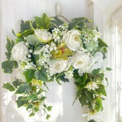 【送料無料】光触媒フラワアレンジメント アーティフィシャルフラワー 夏のアーチ型リース|ホワイトグリーン×エレガント