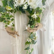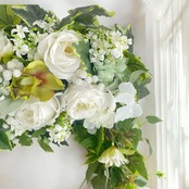 清らかなホワイトローズやクレマチス、やさしく香り立つようなライラック、華やかさを添えるラン。