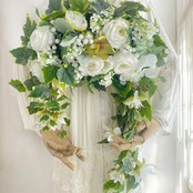 こちらは、初夏から夏にぴったりの爽やかさをまとった、アーチ型のホワイトグリーンリースです。