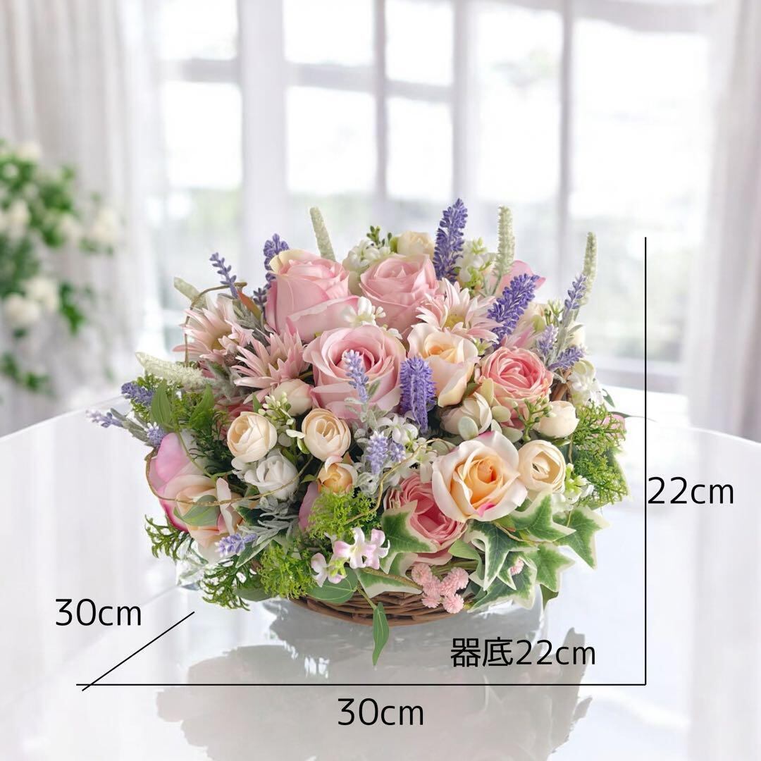 夢咲くバスケットアレンジ*ピンクローズとラベンダーの癒しの花かご 光触媒フラワー アーティフィシャルフラワー フラワーアレンジメント