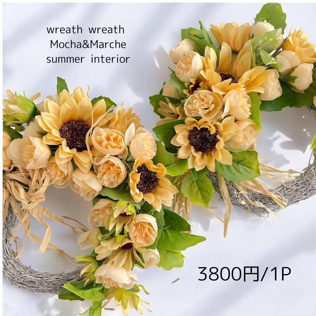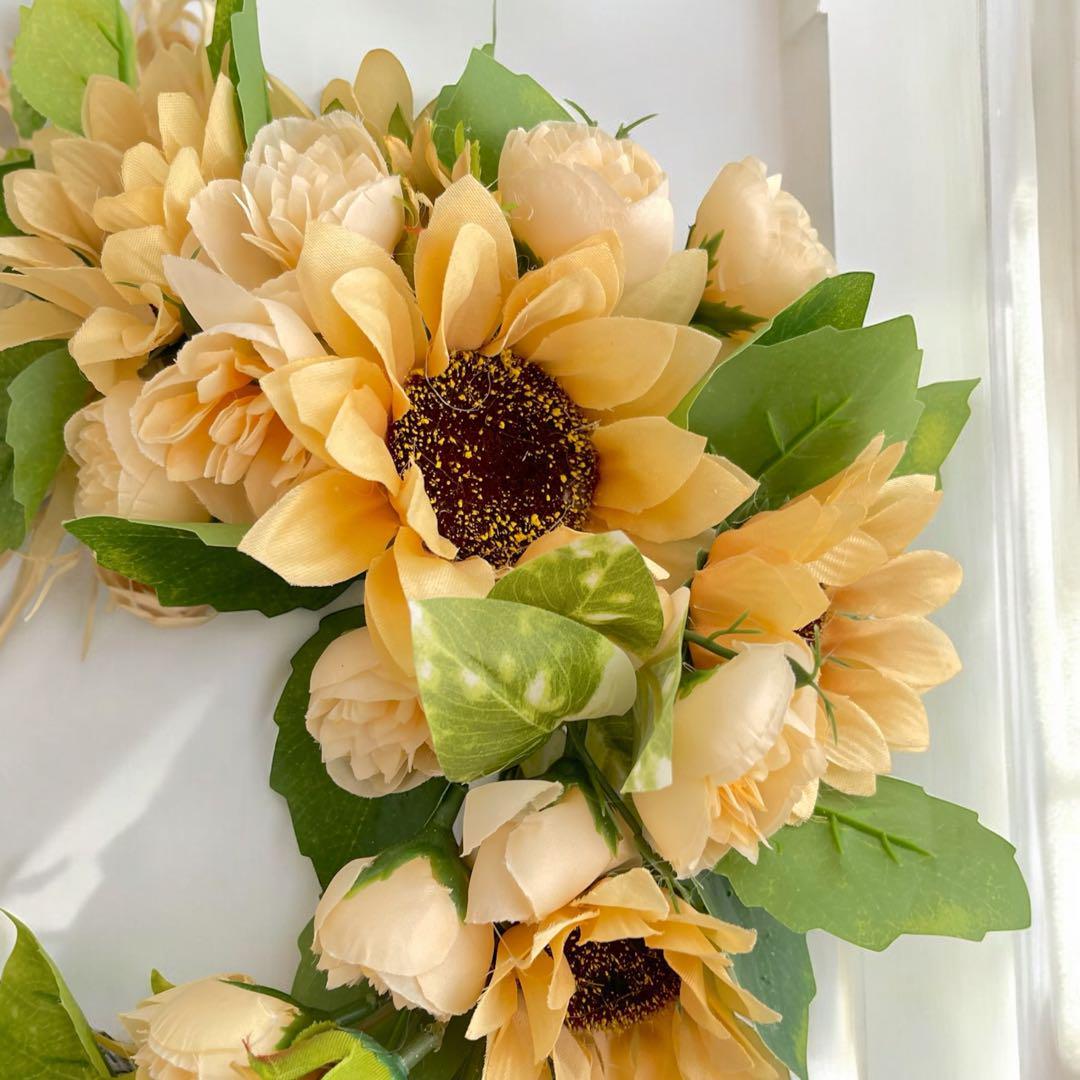 ふわっとやさしい夏の風に揺れる、ひまわりのリースができました。