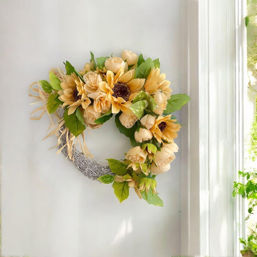 光触媒フラワー ひまわりの夏リース/玄関や壁の装飾に サマリーリース 夏飾り アーティフィシャルフラワー