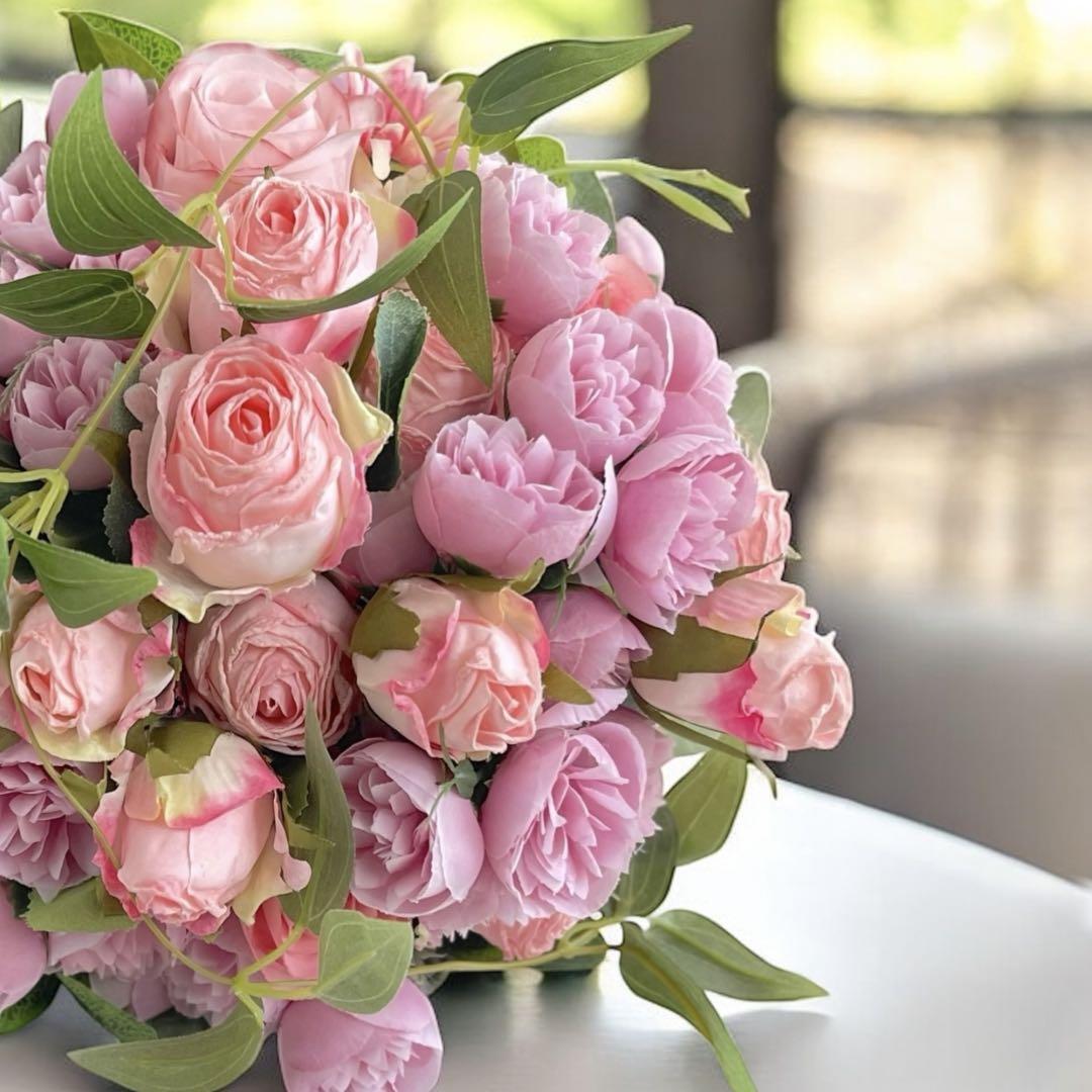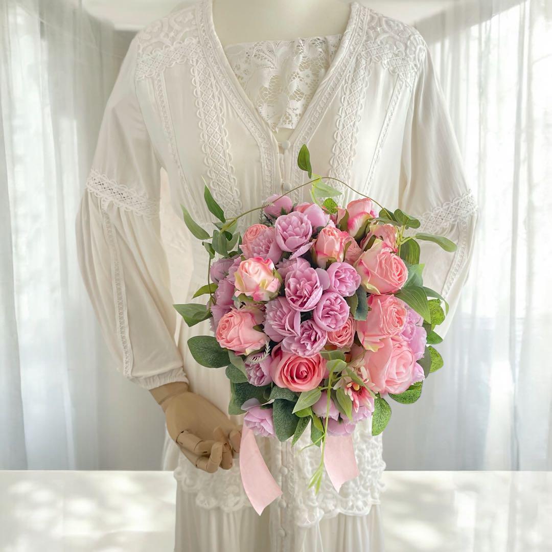 ドライスタイルピンクローズのふんわりブーケアレンジメント 光触媒フラワー クラッチブーケ 花束 アーティフィシャルフラワー