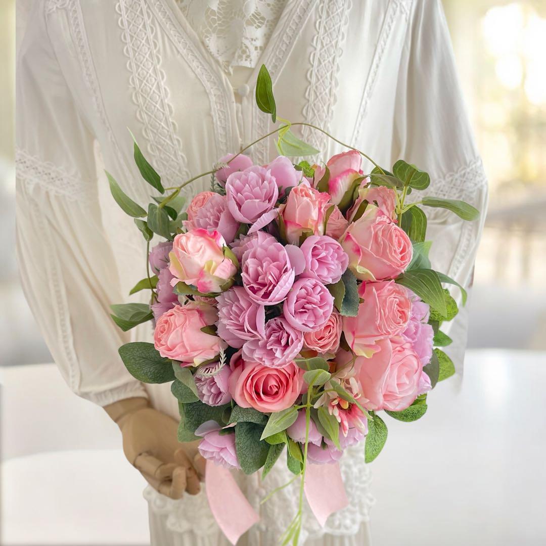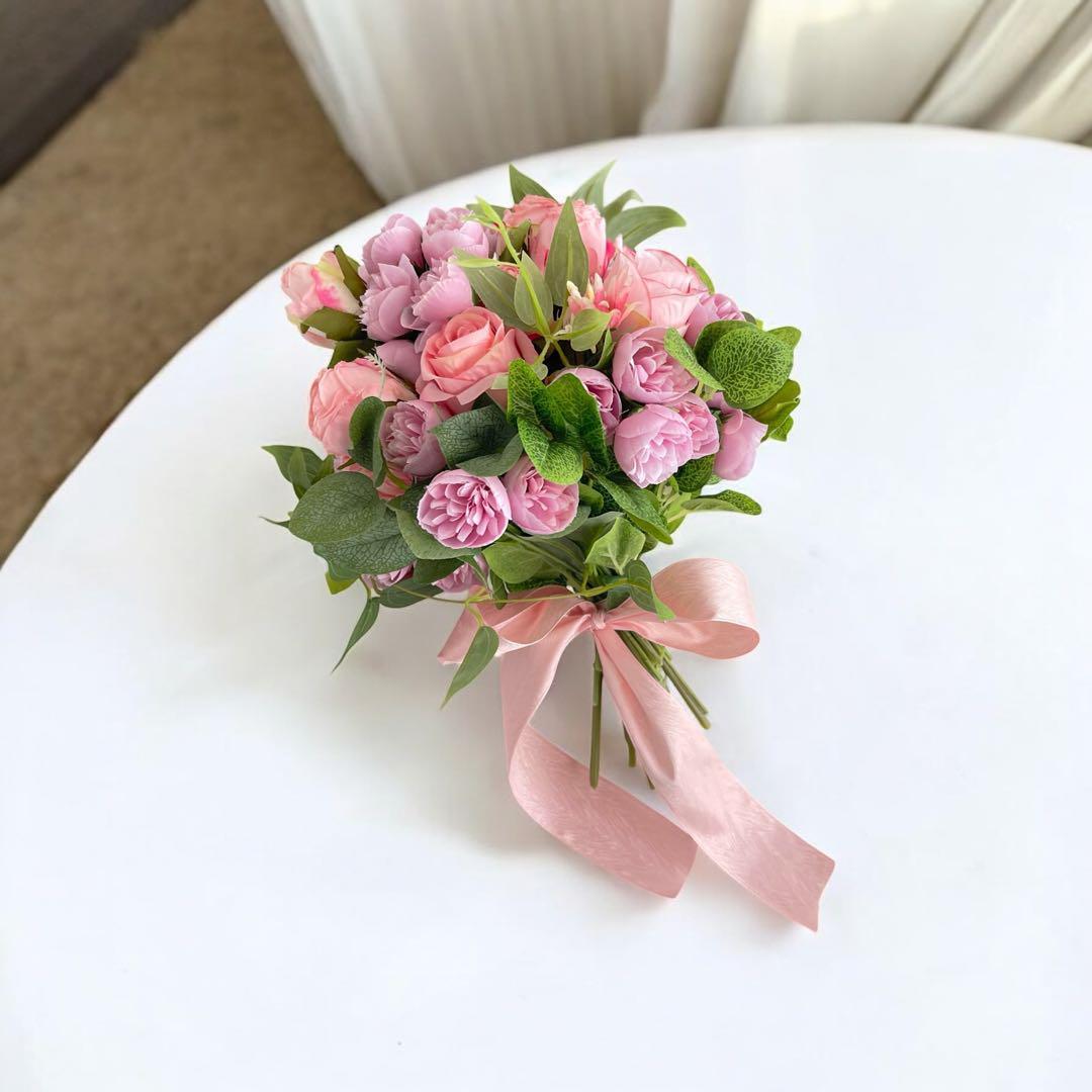 リボン付きのブーケスタイルなので、手に持って花嫁気分を楽しむのも◎。