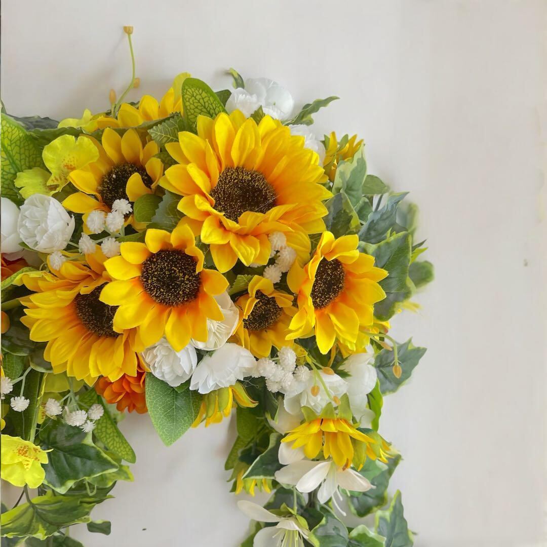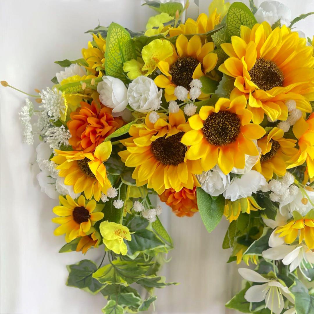 夏に映える向日葵の特大リース 光触媒加工のアーティフィシャルフラワーで華やかに サマーリース 夏ギフト