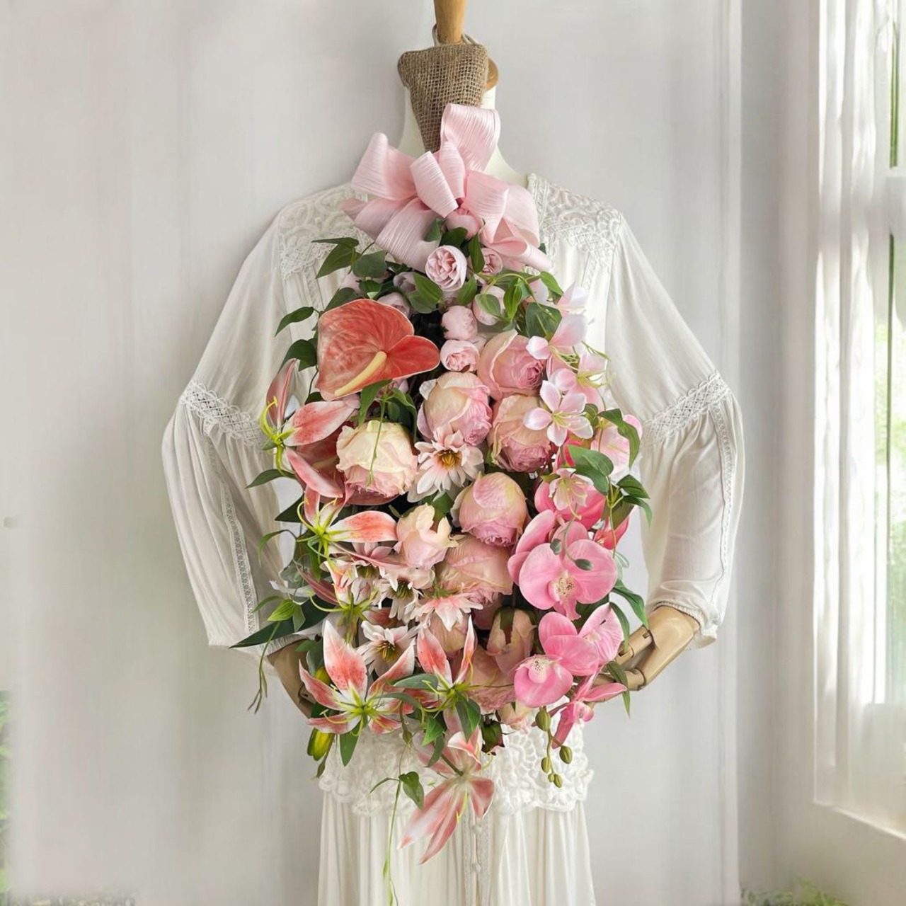 咲き誇る胡蝶蘭や、ドライスタイルのオールドローズ、アンスリウム、グロリオサが織りなす華やかな世界。