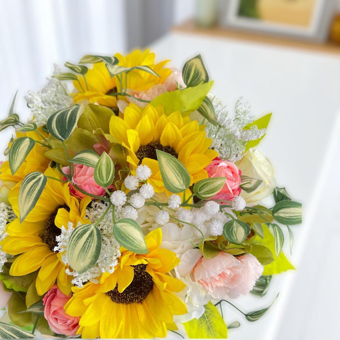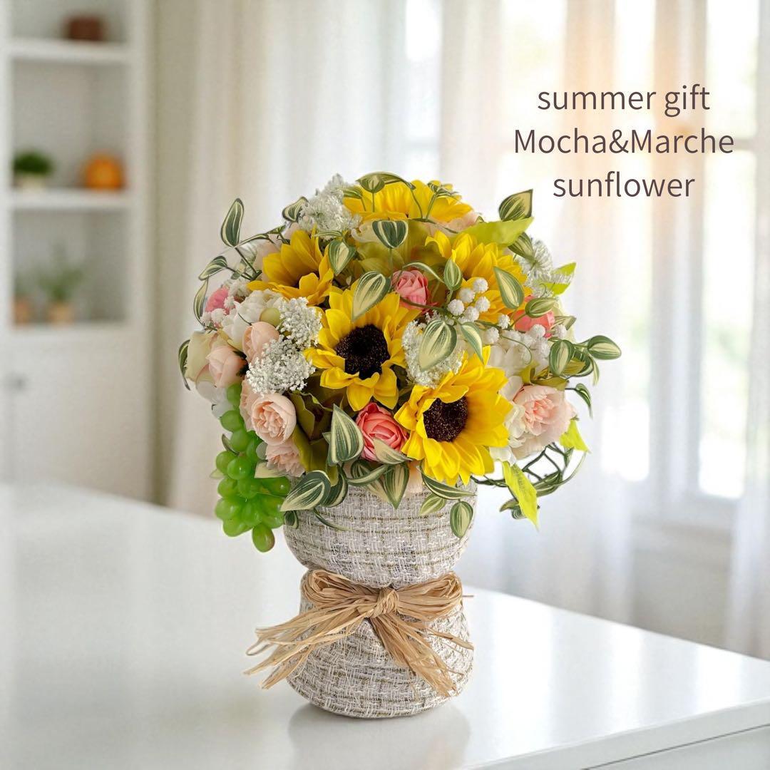 夏のギフトに・そのまま飾れるひまわりの花束アレンジメント/光触媒加工済 お中元 アーティフィシャルフラワー