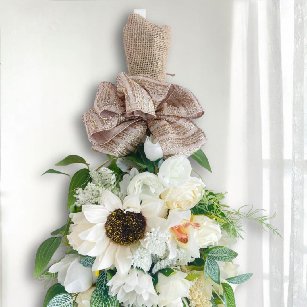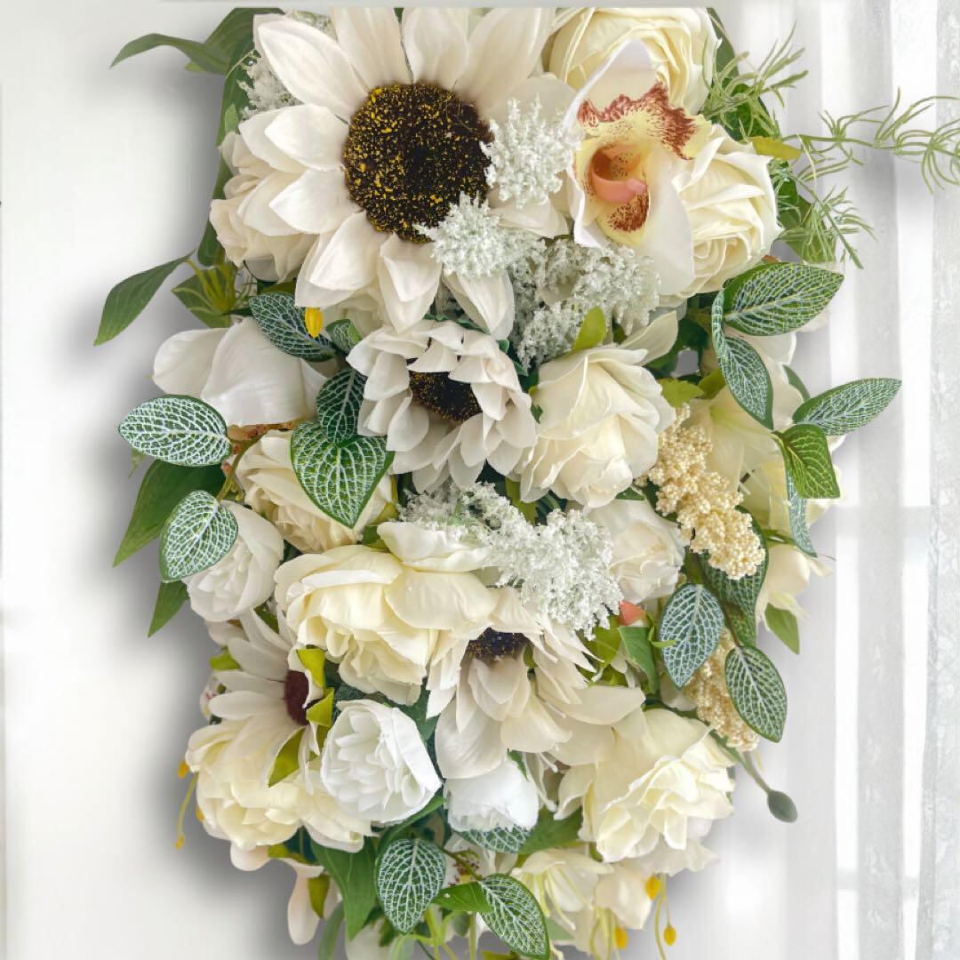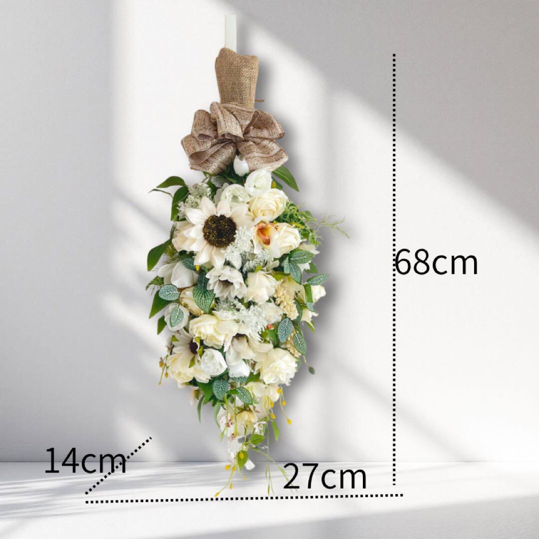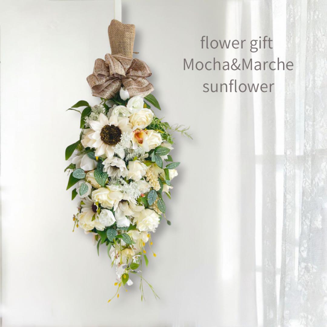 アースホワイトのひまわりスワッグ・スタイリッシュ×上品エレガント・光触媒加工 アーティフィシャルフラワー