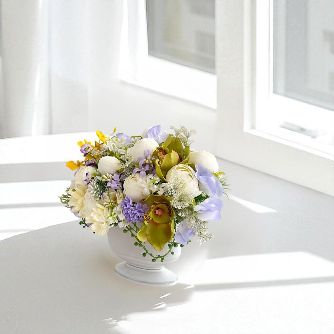 静かな祈りを花にのせて*上質陶器の仏花アレンジ【光触媒加工済】アートフラワー アーティフィシャルフラワー お供え花
