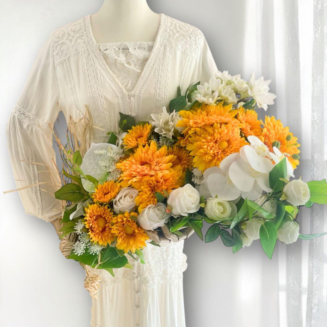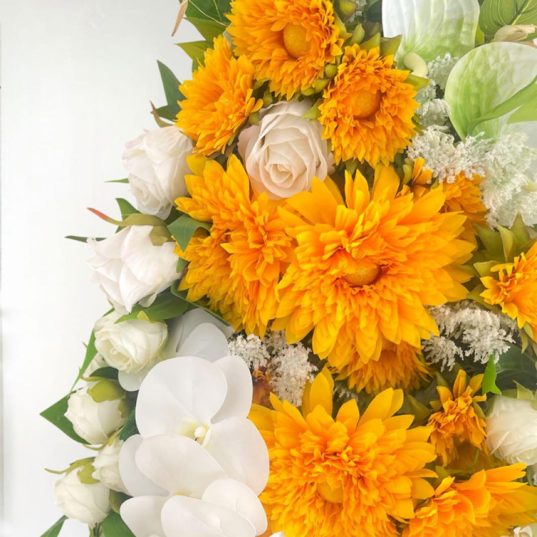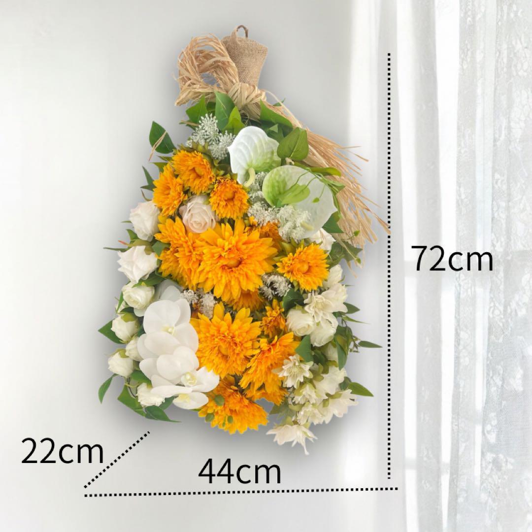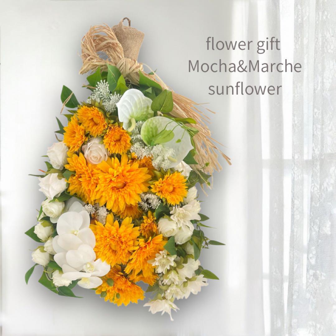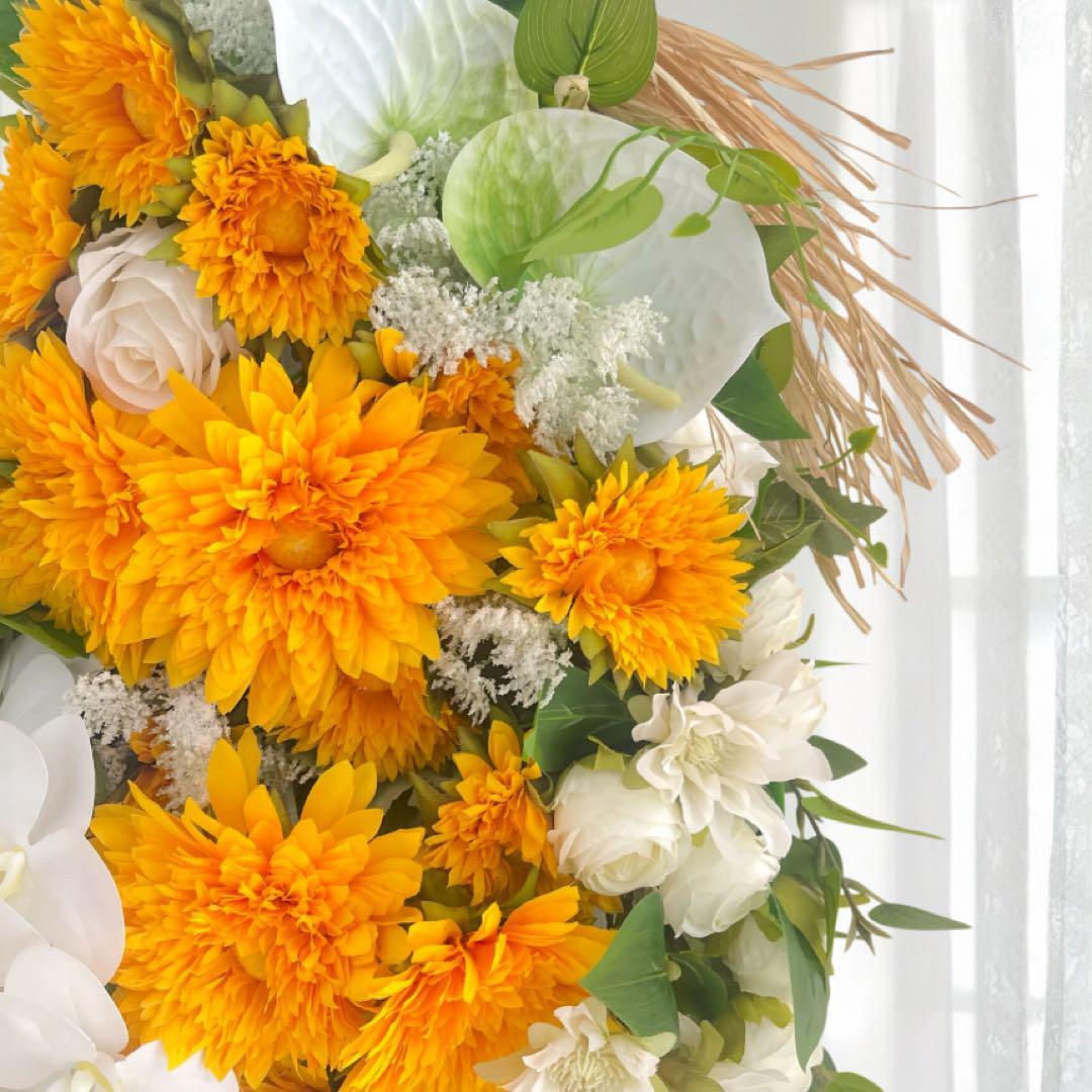 光触媒フラワー 夏を飾るひまわりスワッグ サマーリース サマーギフト アーティフィシャルフラワー サマーギフト 花束 胡蝶蘭と向日葵のスワッグ