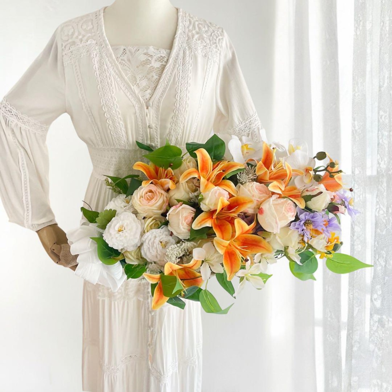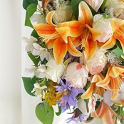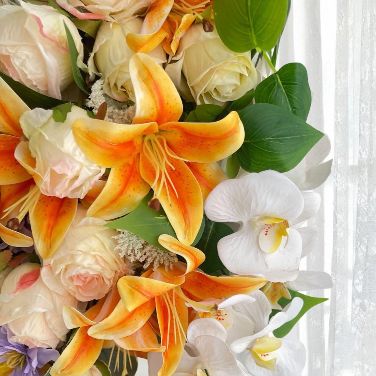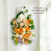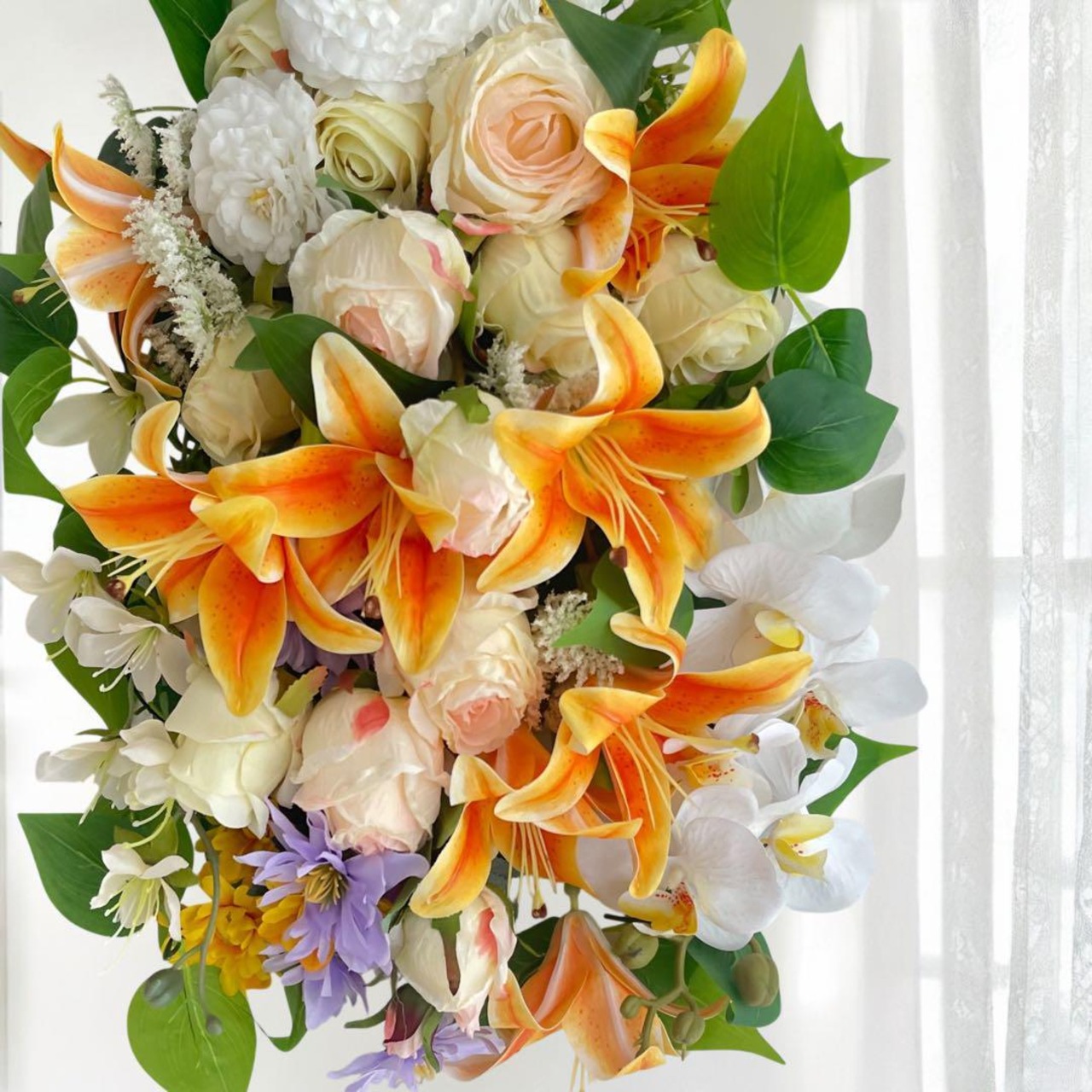 彩り咲くオレンジリリーと胡蝶蘭のエレガントスワッグ【65cm・光触媒加工】
