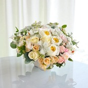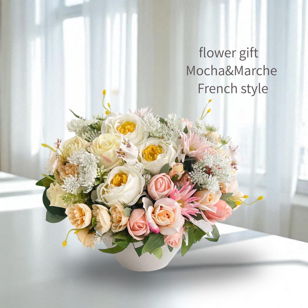 【Mサイズ】咲き誇るバラのフレンチアレンジメント|優美なホワイト×ピンクギフト アーティフィシャルフラワー
