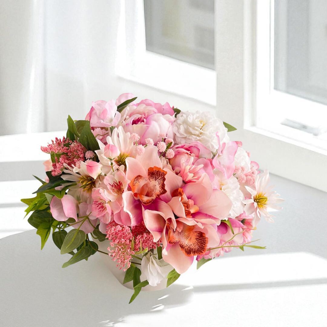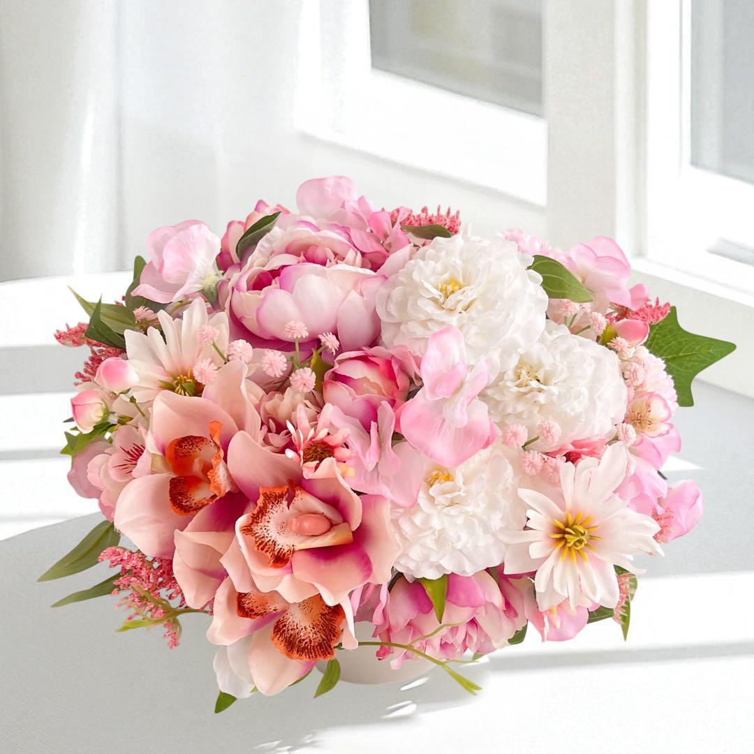 優しさと彩りを束ねて*ピオニーとデンドロの華やぎアレンジメント【Mサイズ】アーティフィシャルフラワー