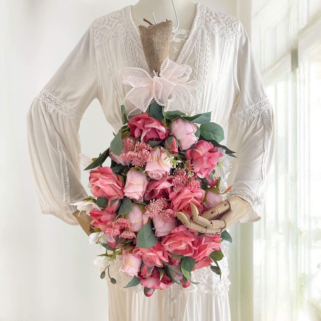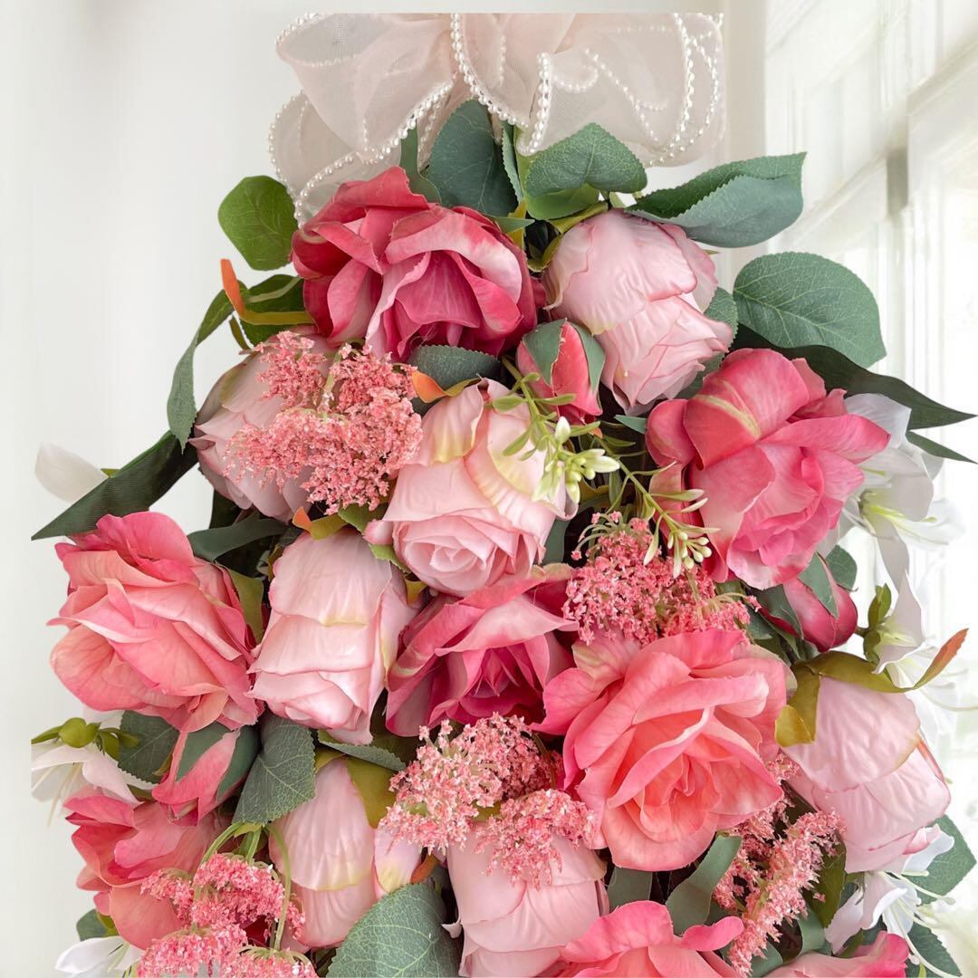 パールリボンとバラのグラデーションスワッグ 〜ピンクの幸せを束ねて〜光触媒加工