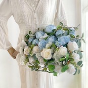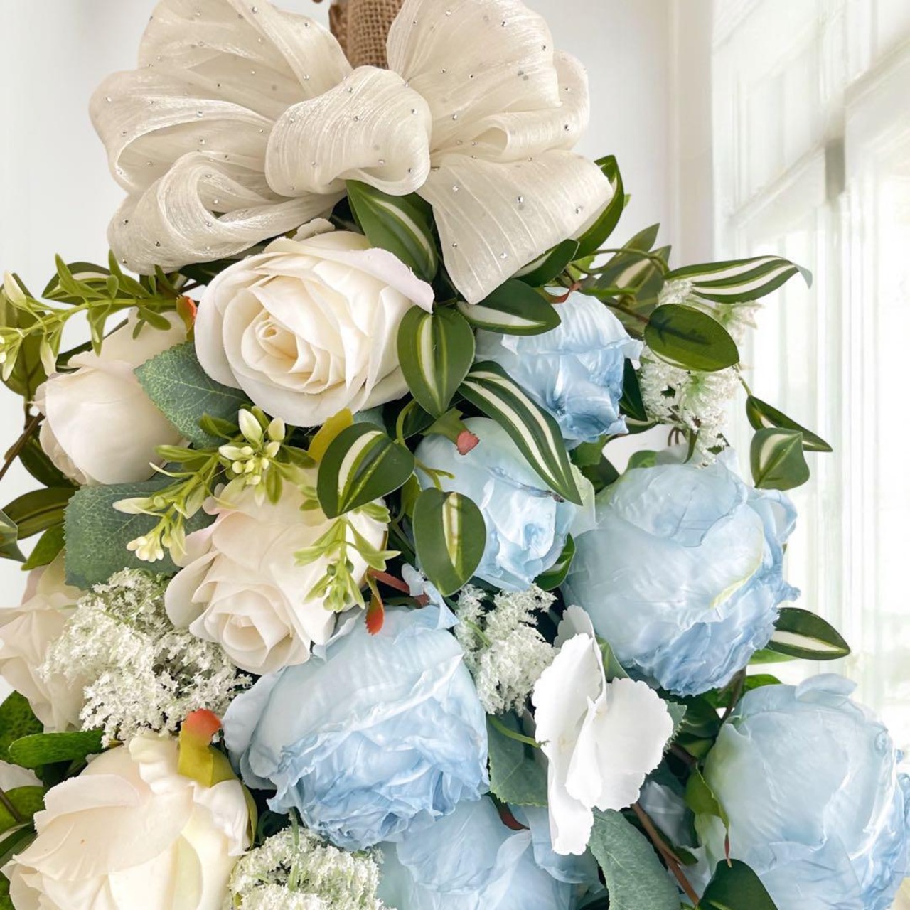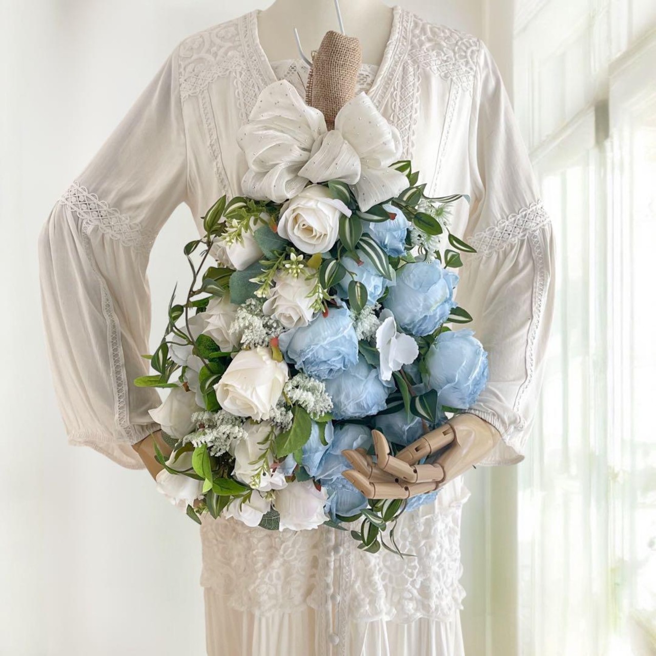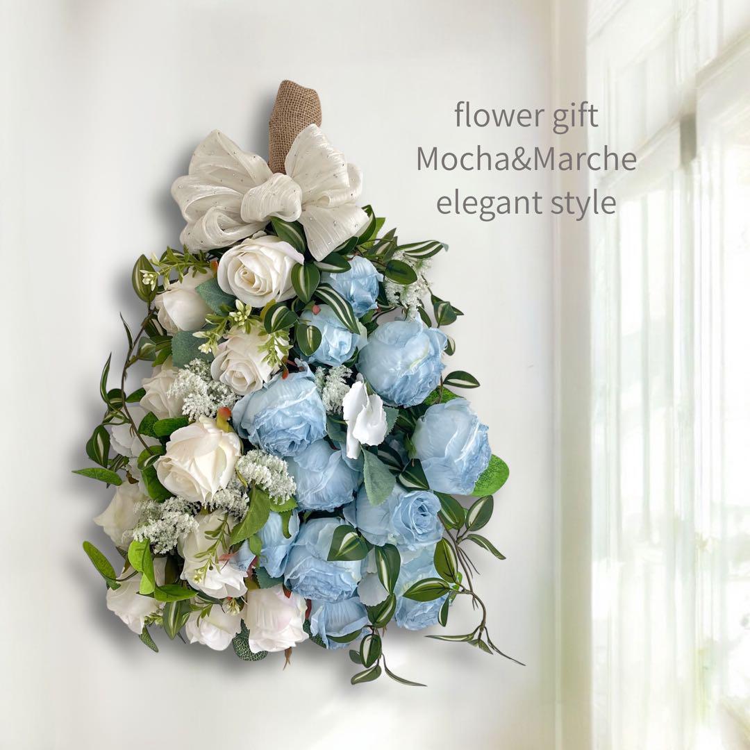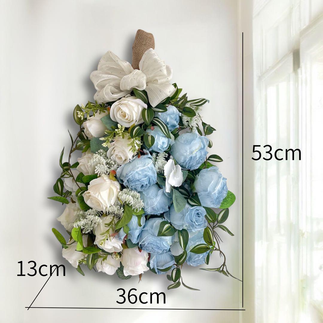 ブルーローズとホワイトローズの優雅なスワッグ〜爽やかな朝に包まれるアレンジメント アーティフィシャルフラワー