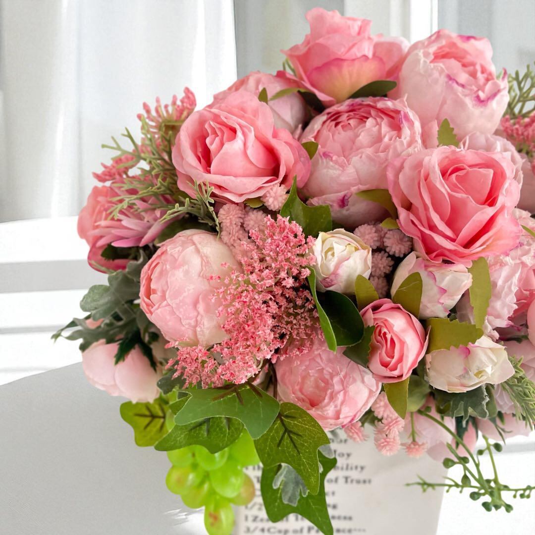 まるで童話の一場面から抜け出してきたような、やさしいピンクに包まれたフラワーアレンジメントです◌ ͙❁˚