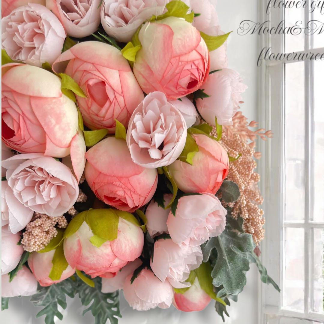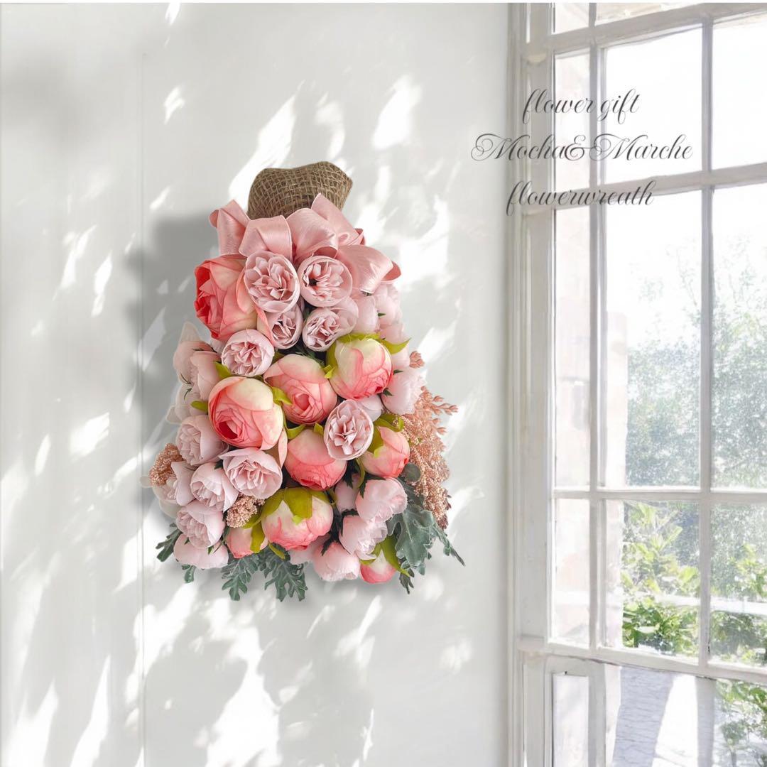 甘く優しいトーンで日常にそっと寄り添う、ピンクローズのスワッグ。