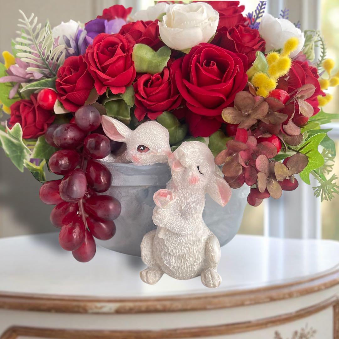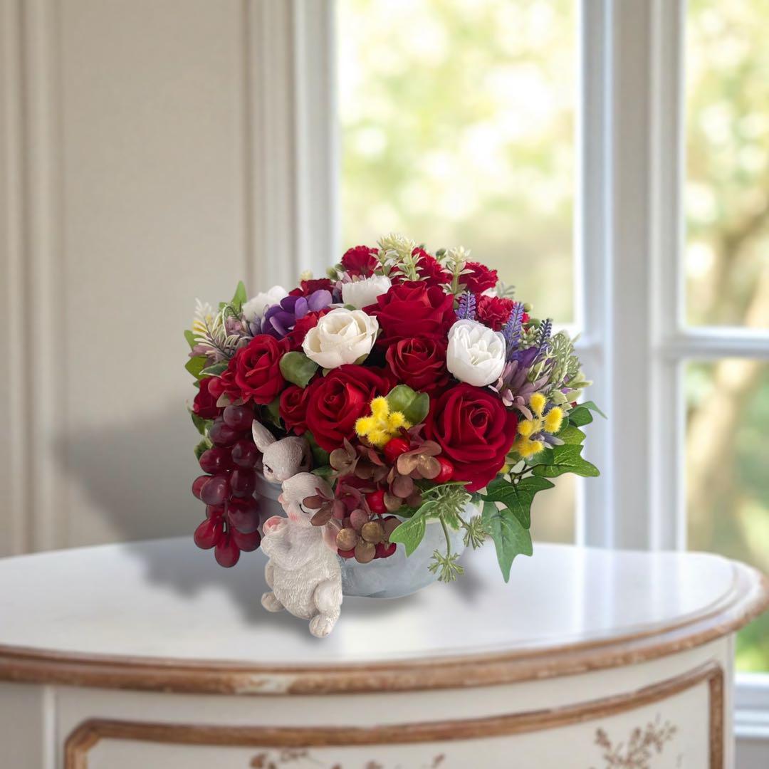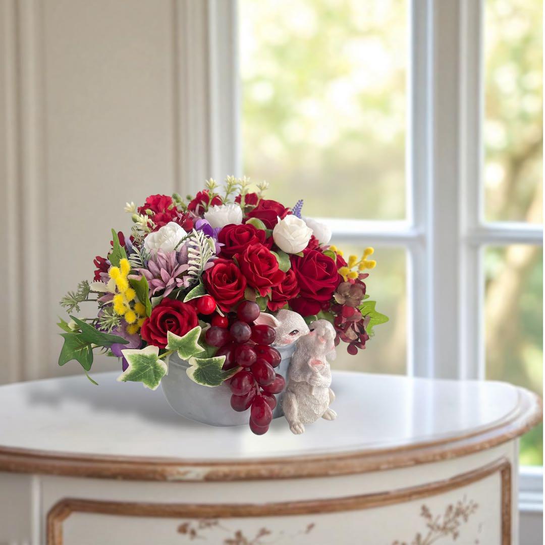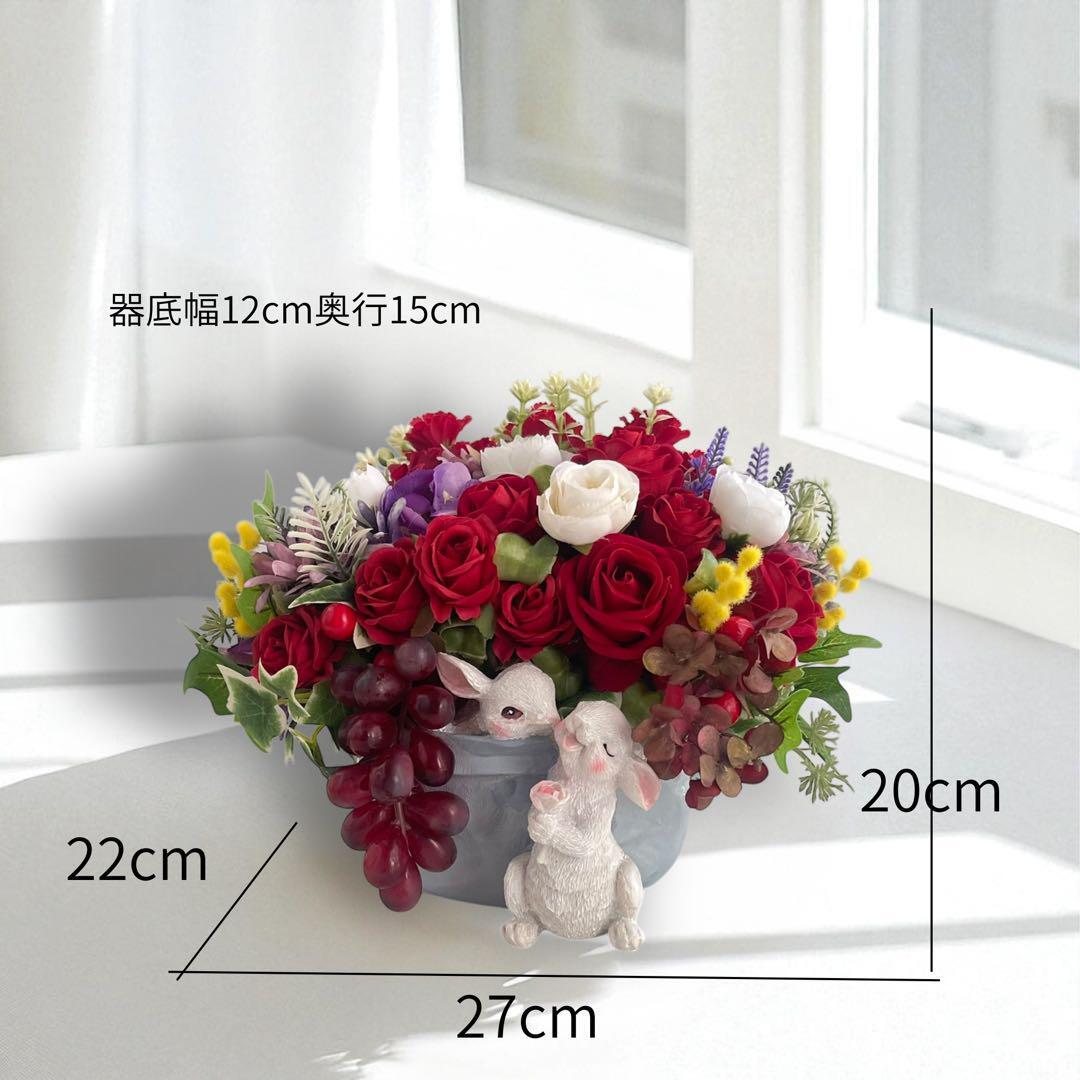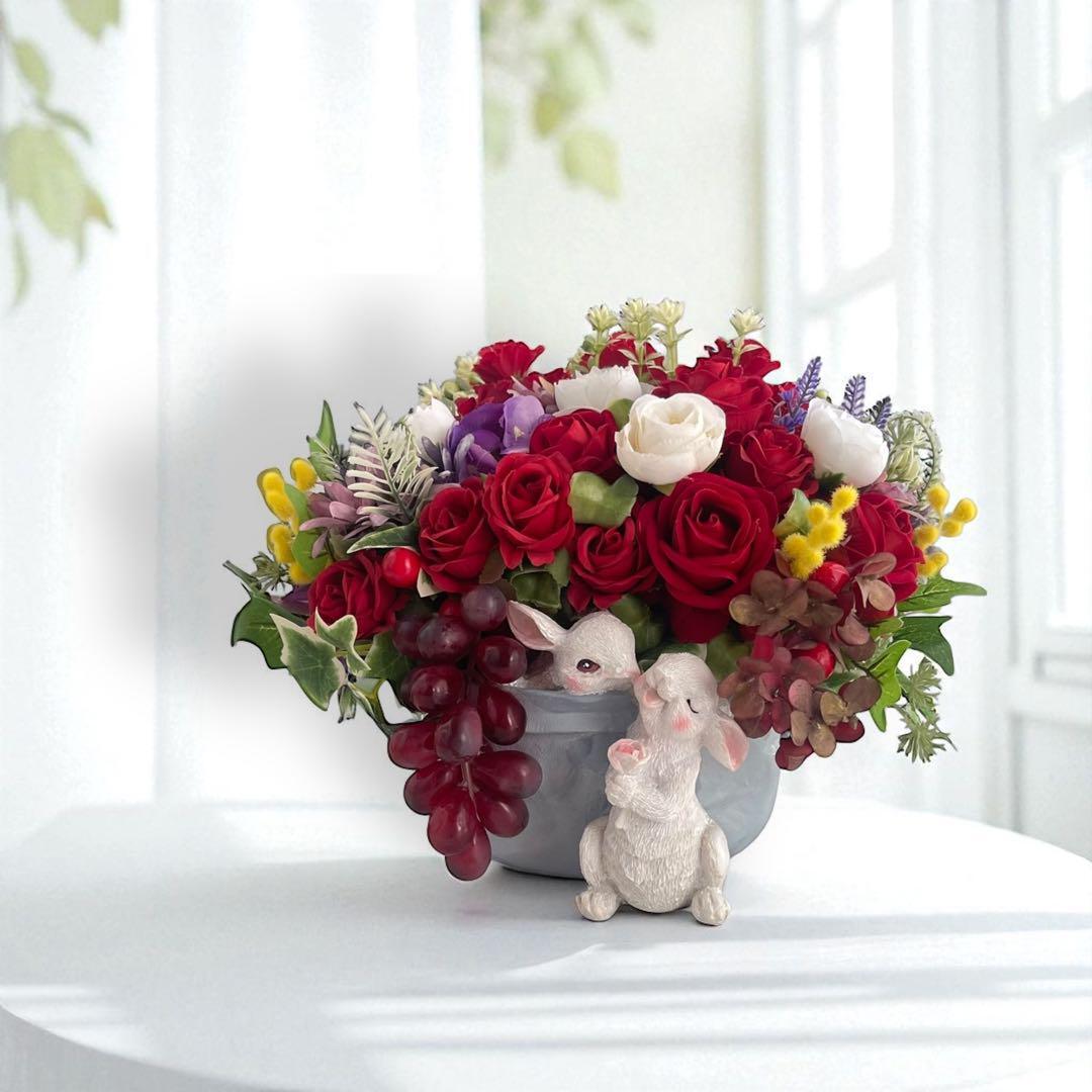 《秋色うさぎアレンジメント》アニマルフラワーギフト/玄関・リビングに癒しと彩りを アニマルインテリア 花瓶付フラワーアレンジ 敬老の日ギフト 誕生日プレゼント 贈り物 記念日 開店祝い
