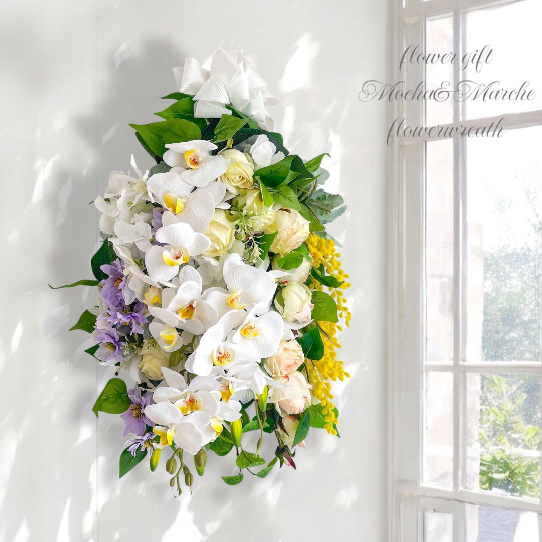 当店人気 開店祝い・開業祝い・周年のお祝いに 華やかで上品な特大スワッグ 光触媒フラワー アーティフィシャルフラワー 花束リース フラワースワッグ 敬老の日ギフト