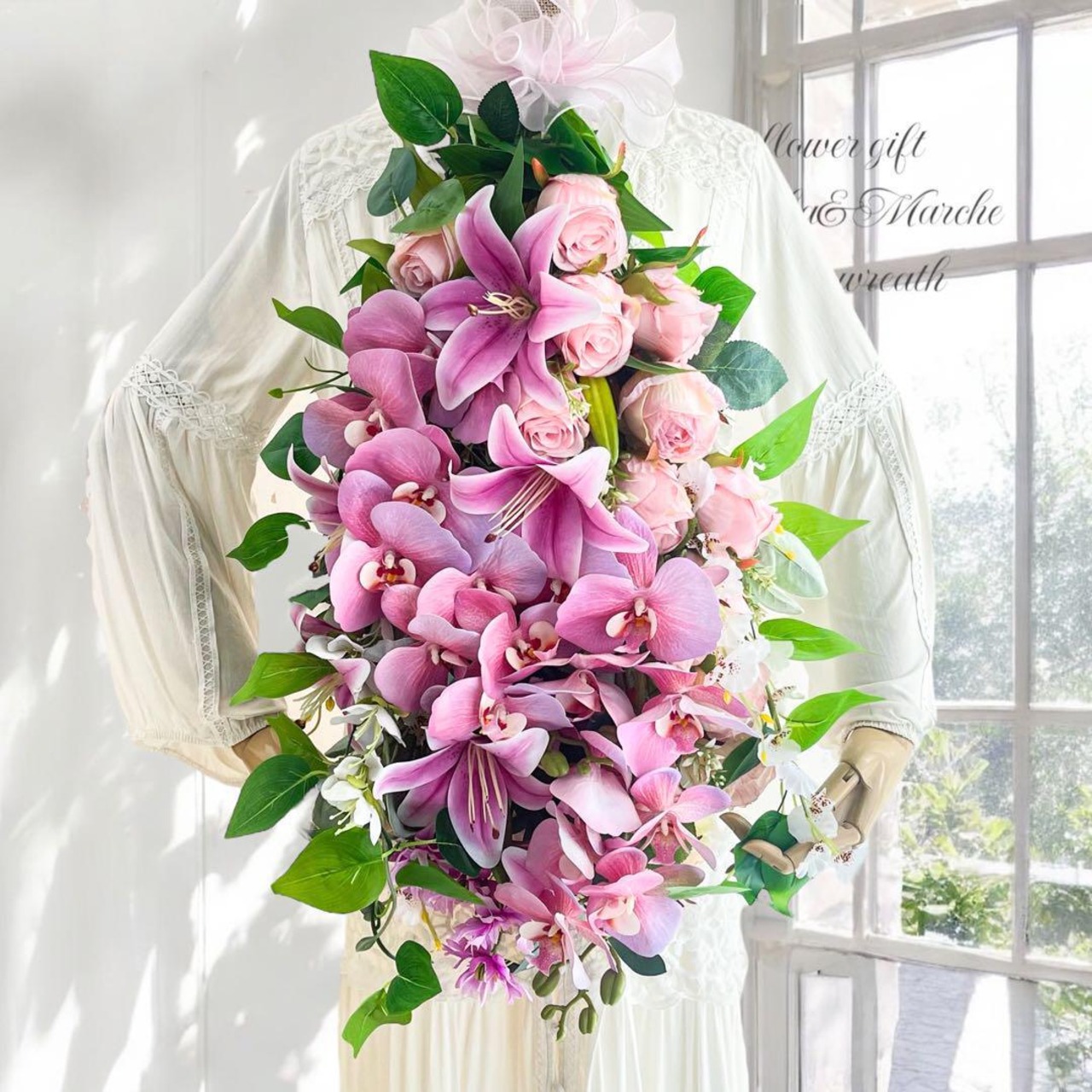 特大スワッグ 胡蝶蘭とユリの豪華スワッグ|開店祝い・お誕生日・開業・敬老の日にも アーティフィシャルフラワー 胡蝶蘭の贈り物