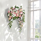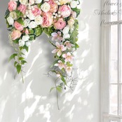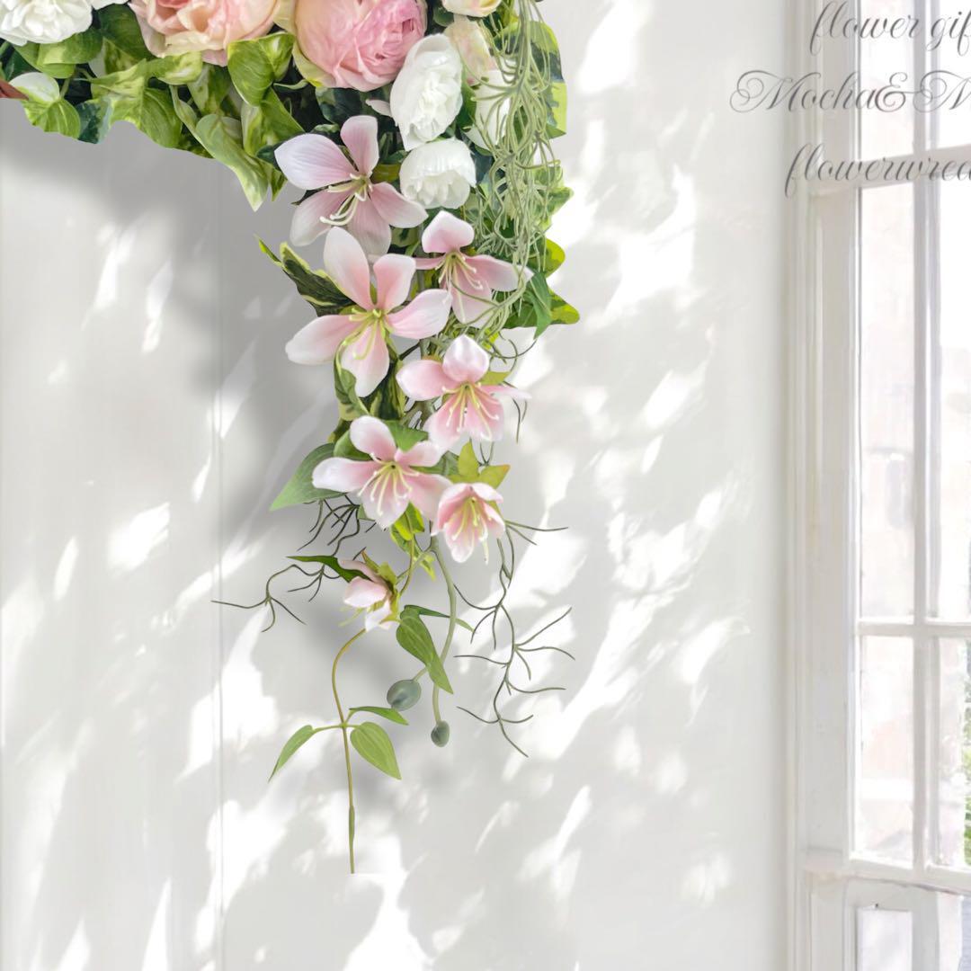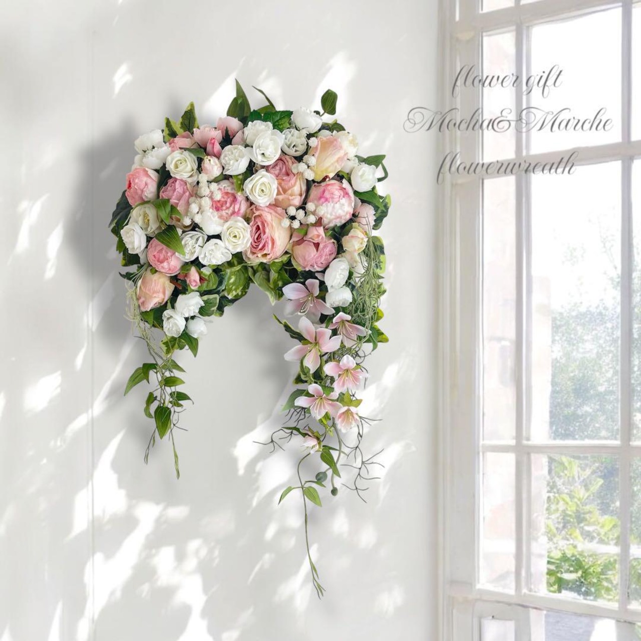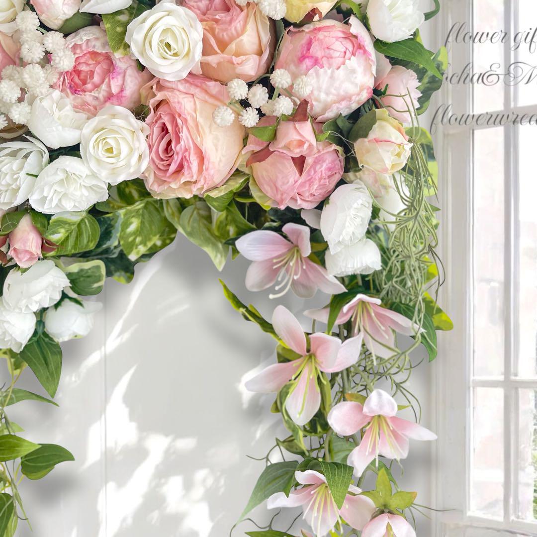 光触媒フラワー ピンクローズと百合のアーチリース|華やかブロッサムリース アーティフィシャルフラワー 玄関リース ドアリース 光触媒フラワー