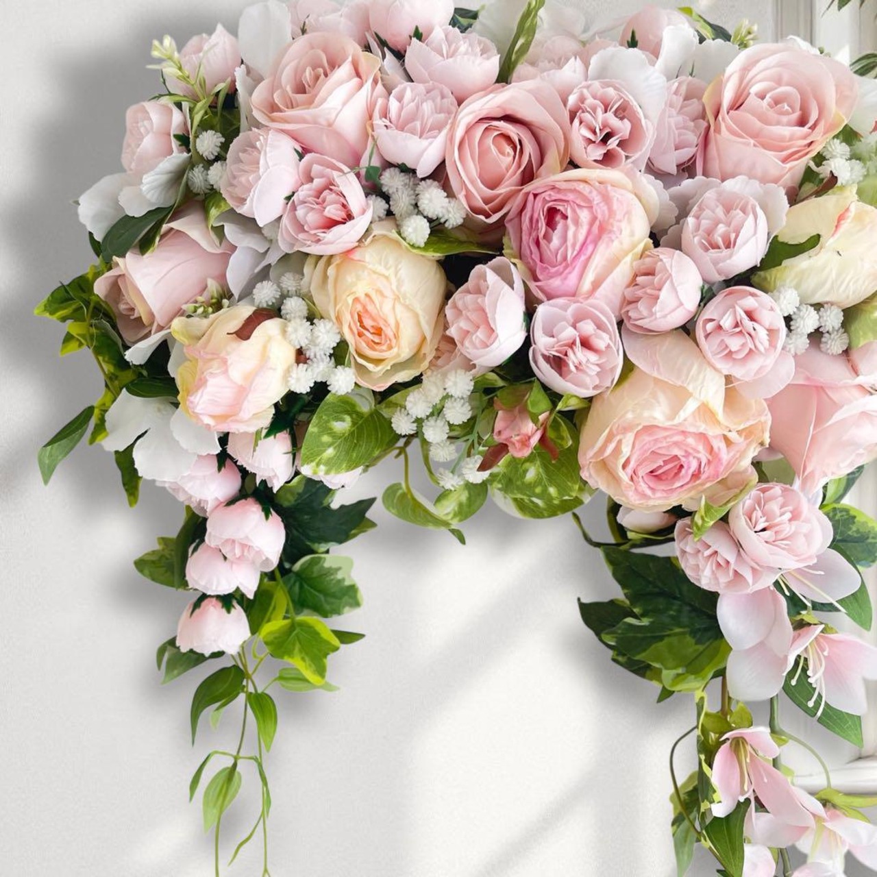 ブロッサムリース アーチ型リース 上品で華やかな壁掛けアレンジ 光触媒加工済 アーティフィシャルフラワー 玄関リース ドアリース