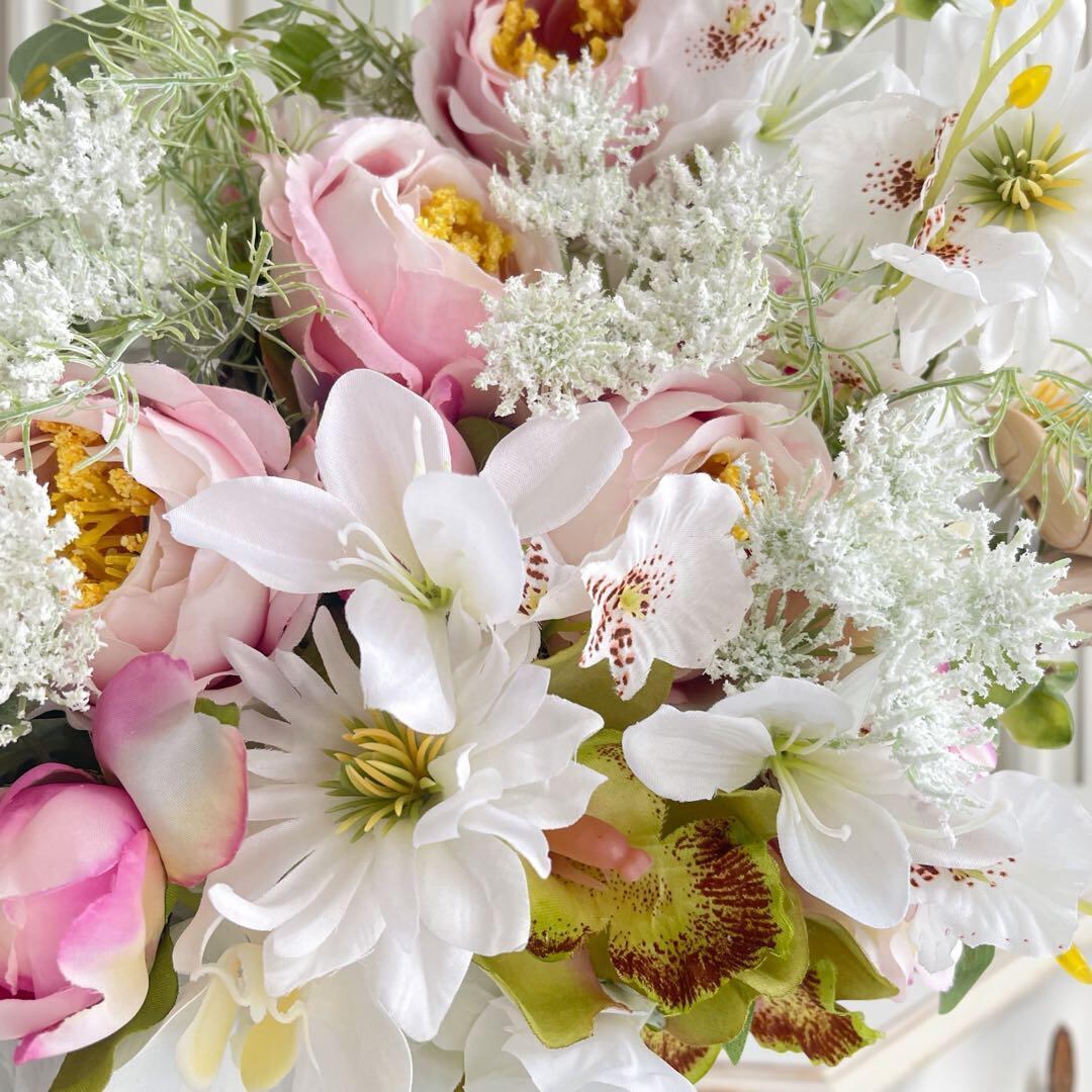 まるで花々が語りかけるように咲き誇る、贅沢なフラワーアレンジメントの完成です◌ ͙❁˚
