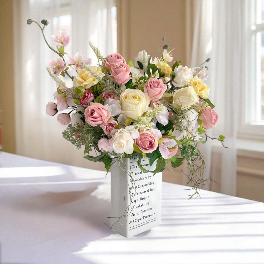上品なピンク、ミルキーなホワイト、淡いイエローが織りなす色彩は、空間全体を明るく包み込み、特別な日も、何気ない日常も、華やぎで満たしてくれます。