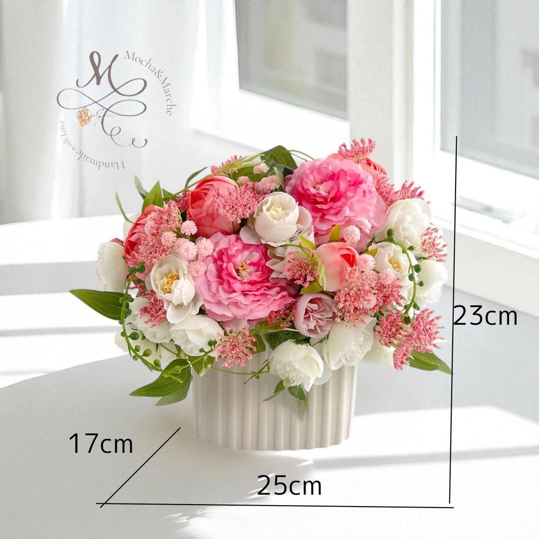 光触媒加工 ピンク&ホワイトのフラワーアレンジメント 誕生日・敬老の日ギフト アーティフィシャルフラワー