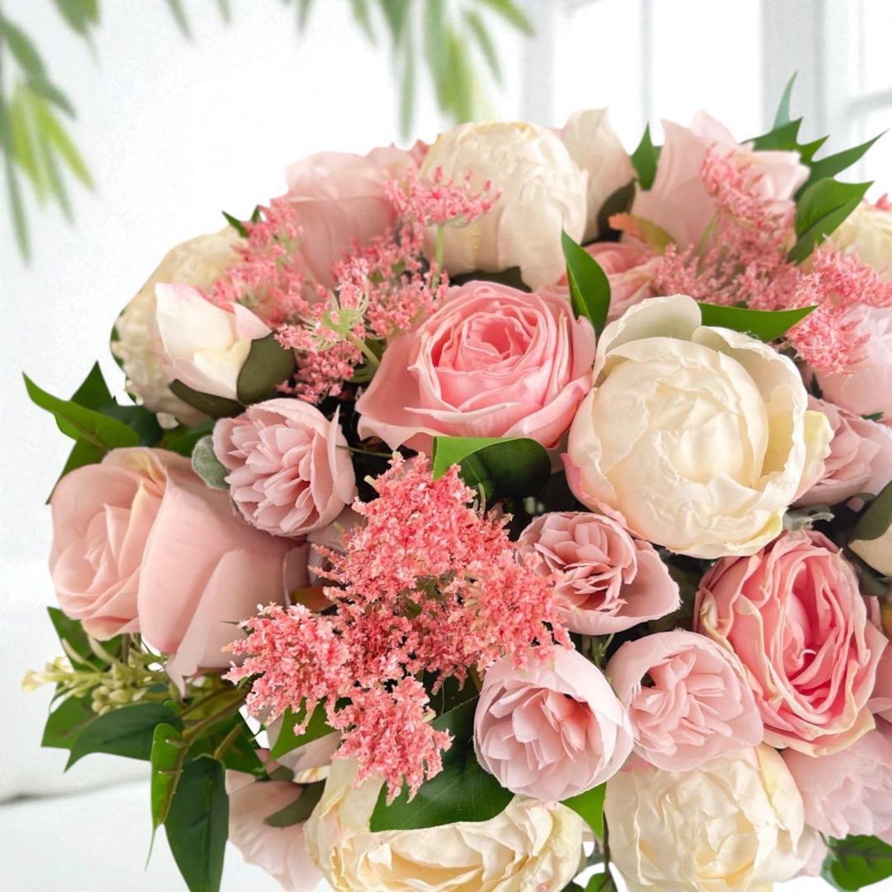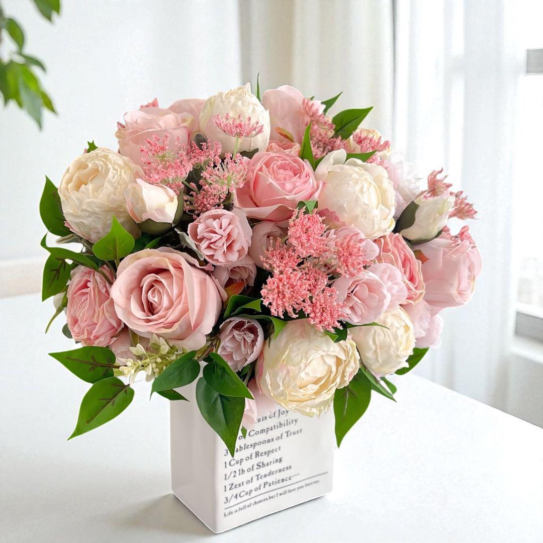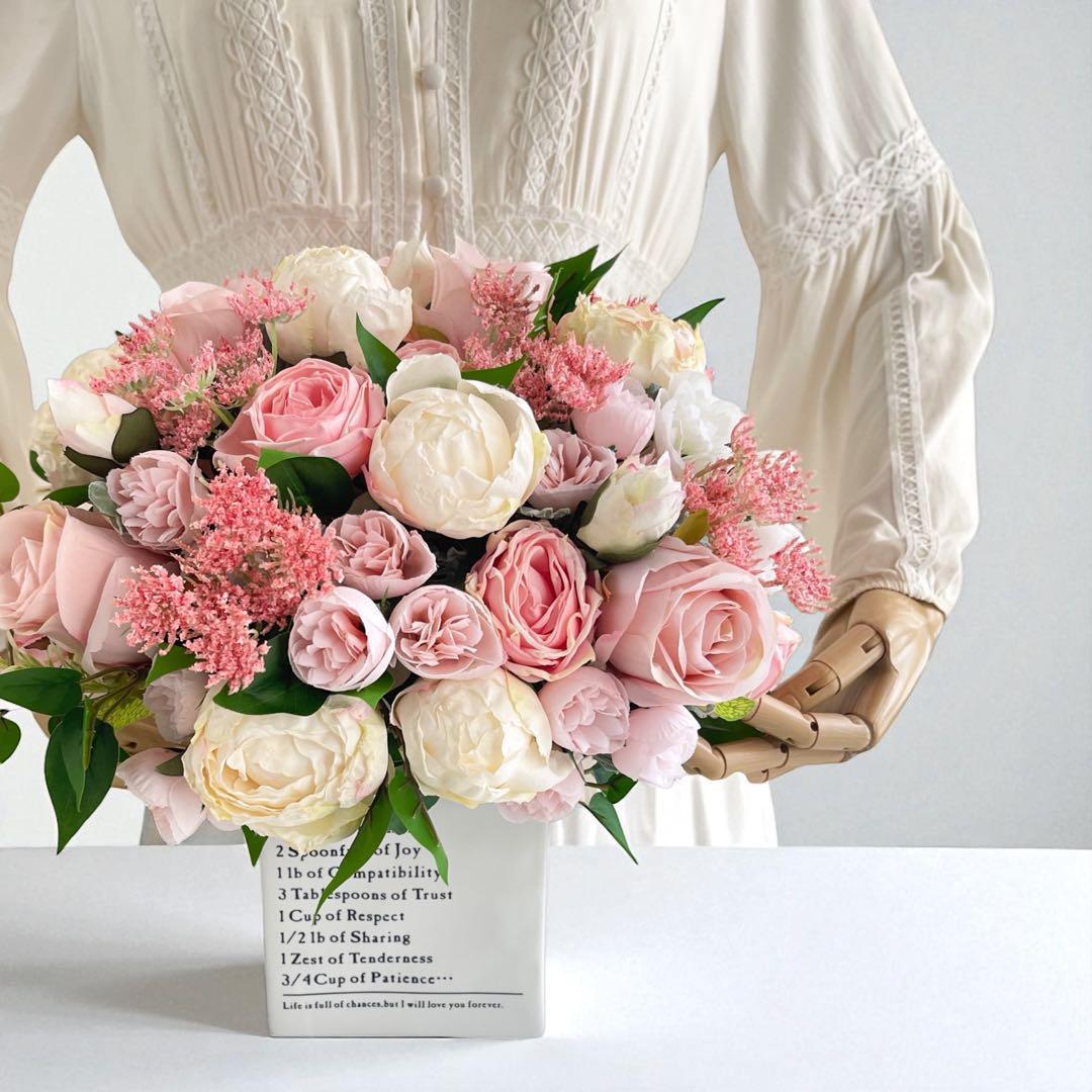 ピンクローズとホワイトローズのエレガントギフトアレンジメント ~花器付き~アーティフィシャルフラワー