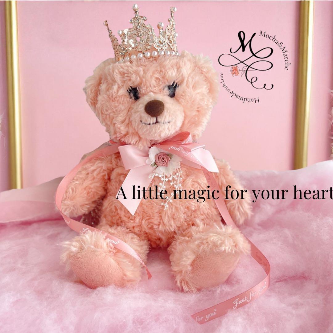 優雅なフラワーボックスには、ふんわりと香るようなローズやラナンキュラスをぎゅっと詰めこみ、隣には小さな王冠を戴いたプリンセスベアが寄り添います。