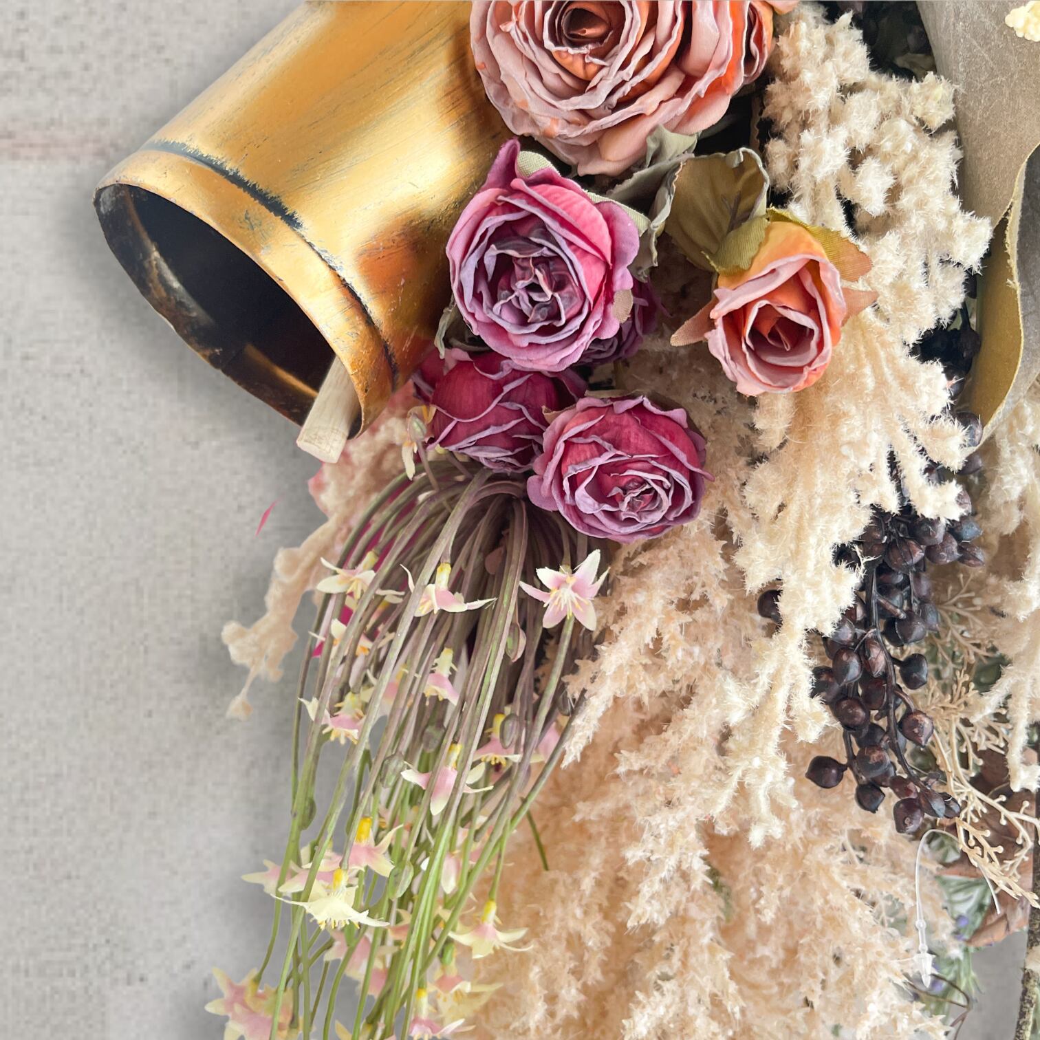 光触媒フラワー ドライフラワー風 スワッグL カウベルとパンパスグラスの冬の調べ アーティフィシャルフラワー