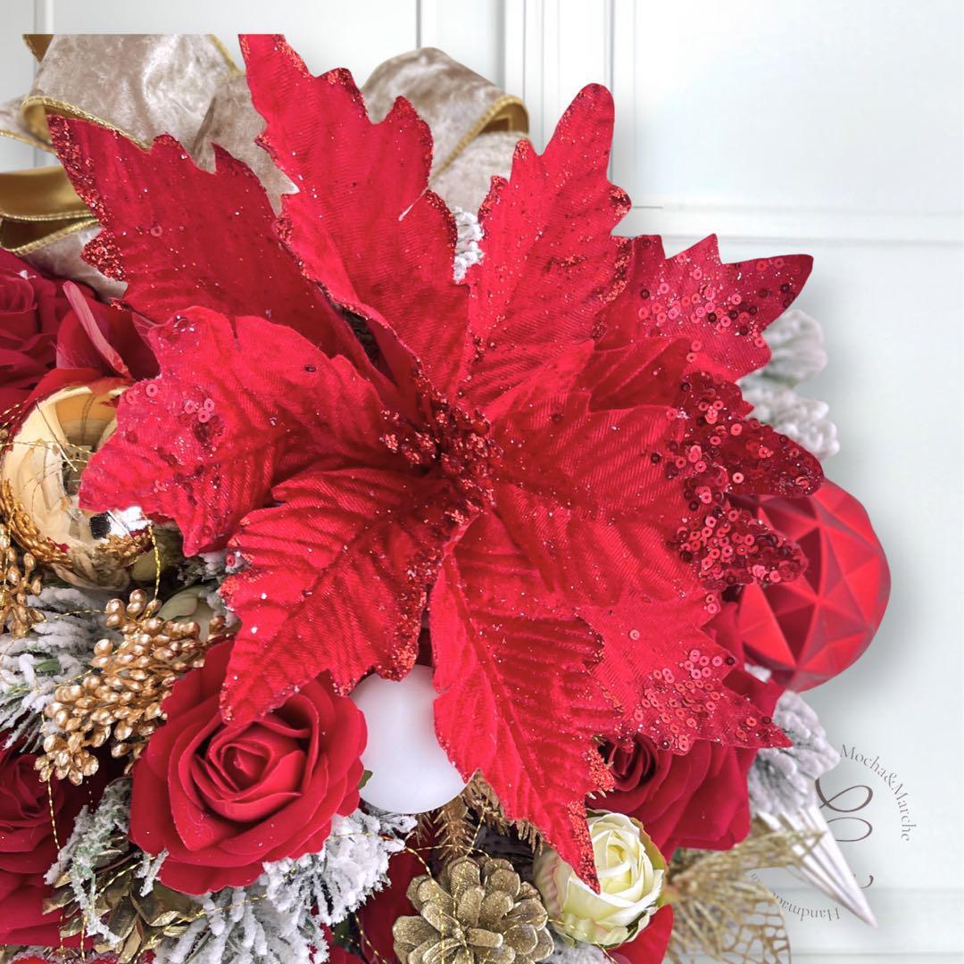 ・装飾:ポインセチア・ローズ・松かさ・ゴールドリーフ・オーナメント