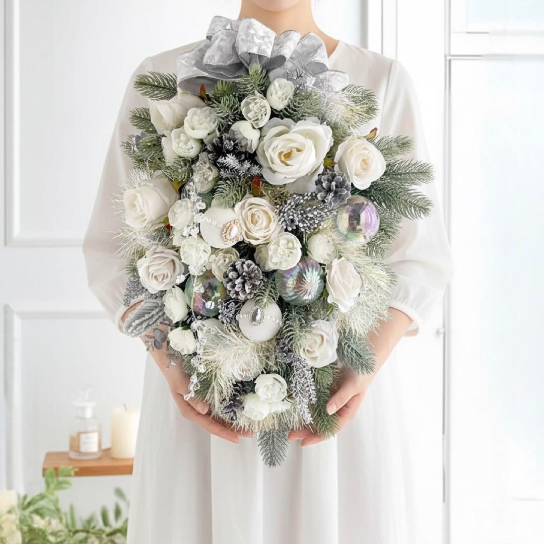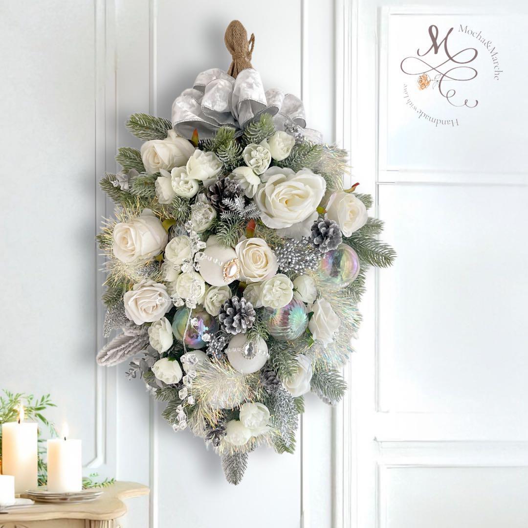 純白の煌めきに包まれる、ラグジュアリークリスマスリース◌ ͙❁˚