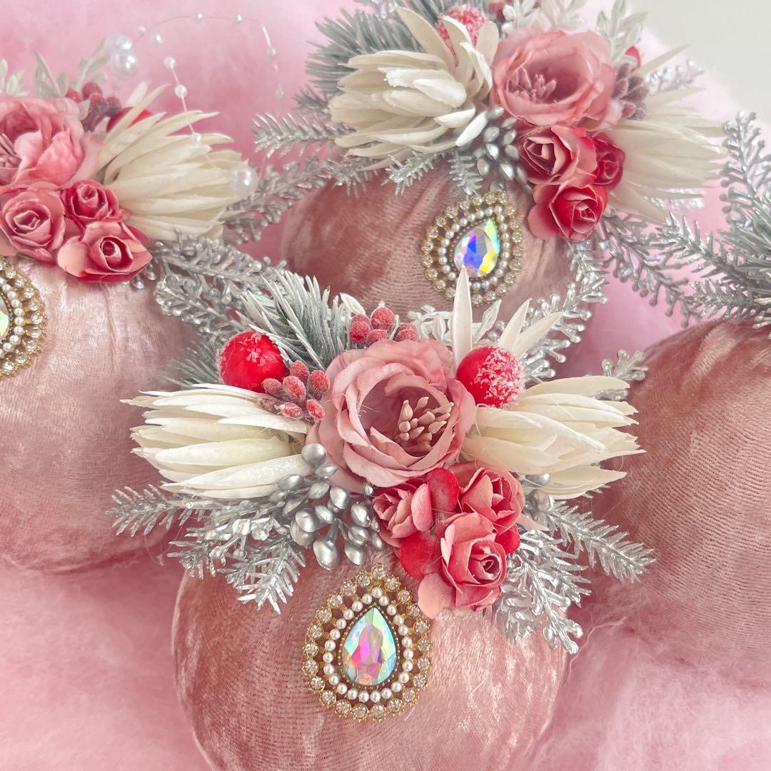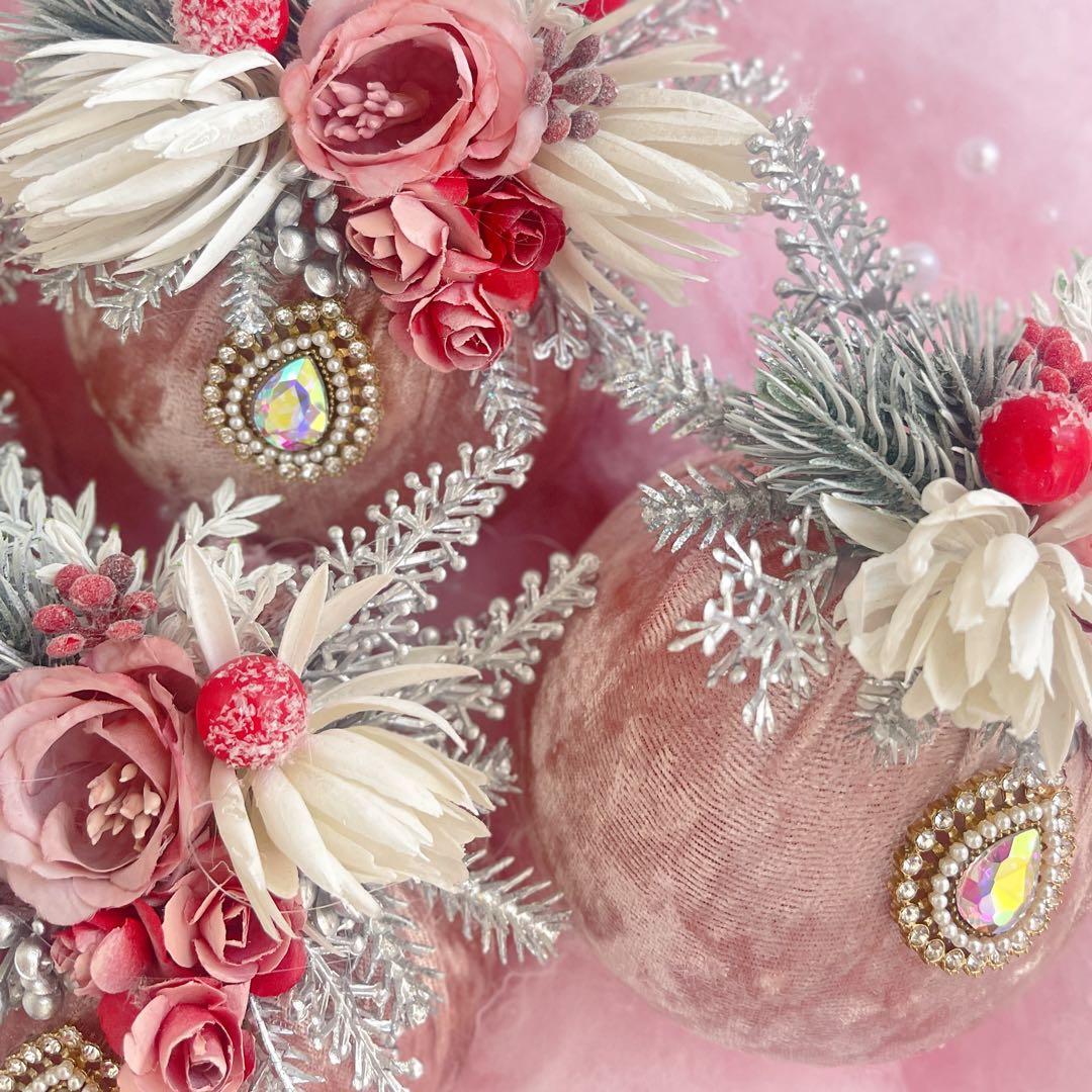 ベルベットピンクの魔法4個セット/ハンドメイド クリスマスオーナメント セット クリスマスツリー