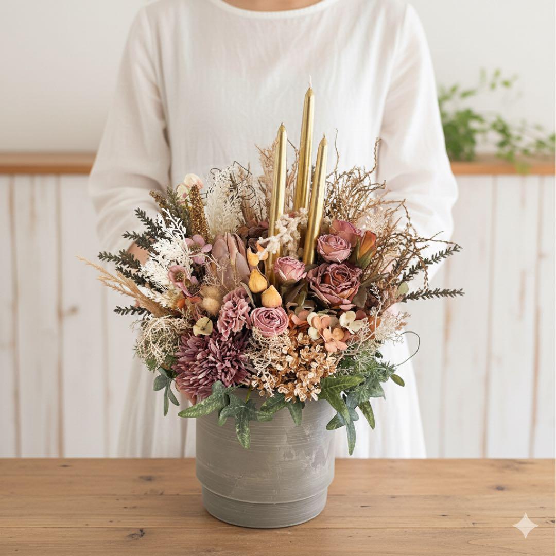・使用花材:アーティフィシャルフラワー(ドライ造花)