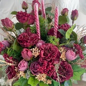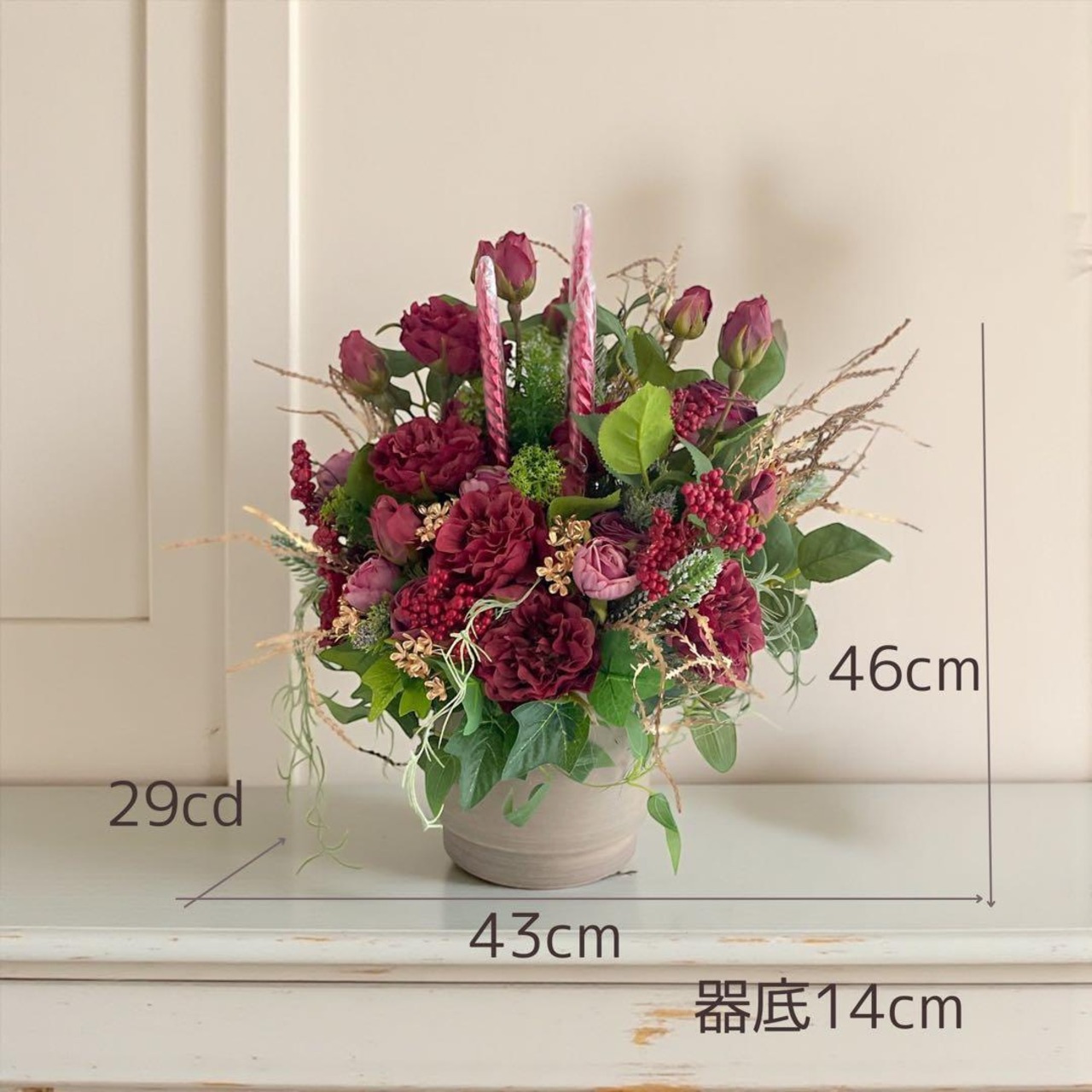 クラシカルボルドーキャンドルのクリスマスアレンジメント 〜心を灯すクリスマス〜 アーティフィシャルフラワー