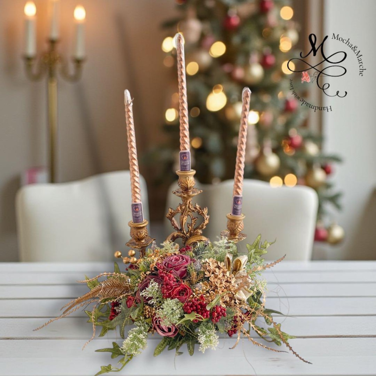 まるで映画のワンシーンのような、上品で華やかなクリスマスを演出するキャンドルアレンジメント。