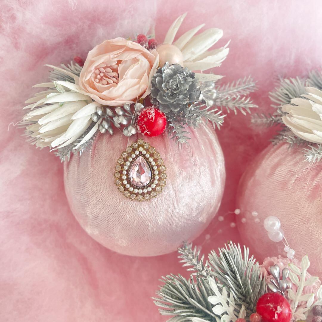 ベルベットピンクの魔法3個セット/ハンドメイド クリスマスオーナメントセット