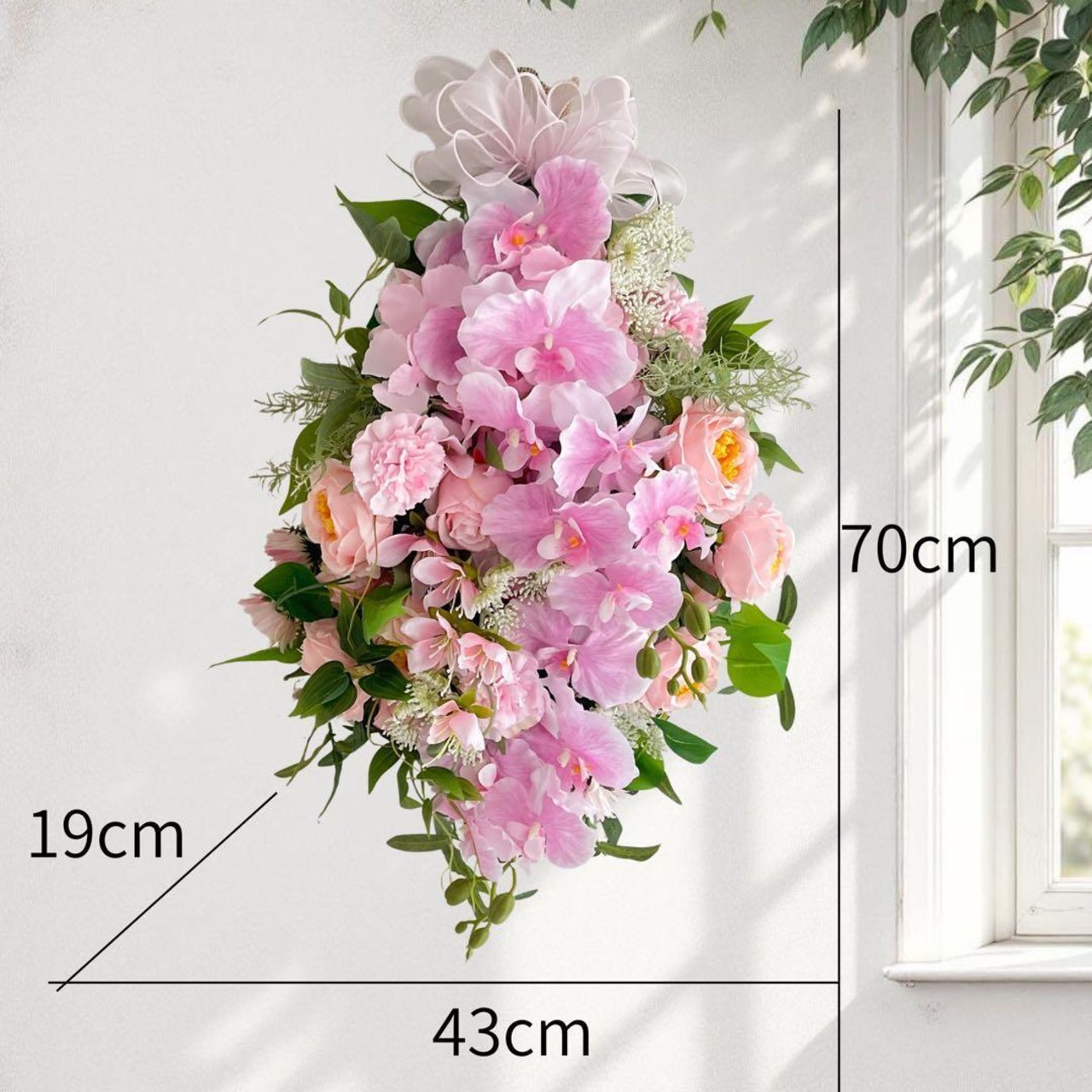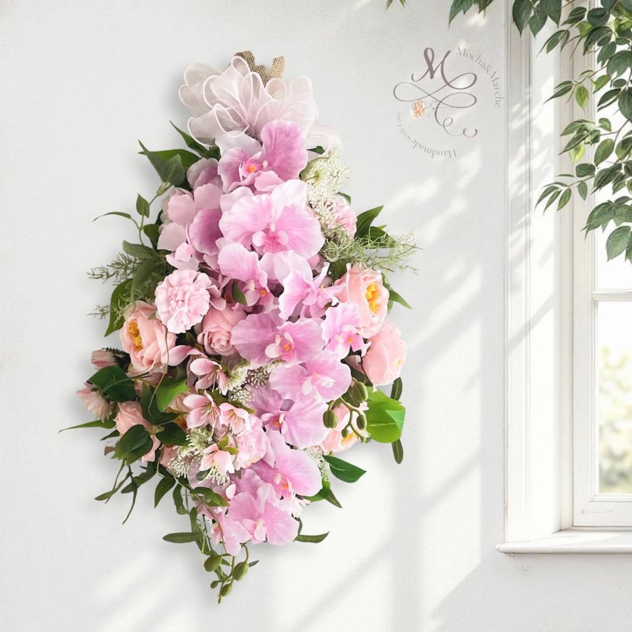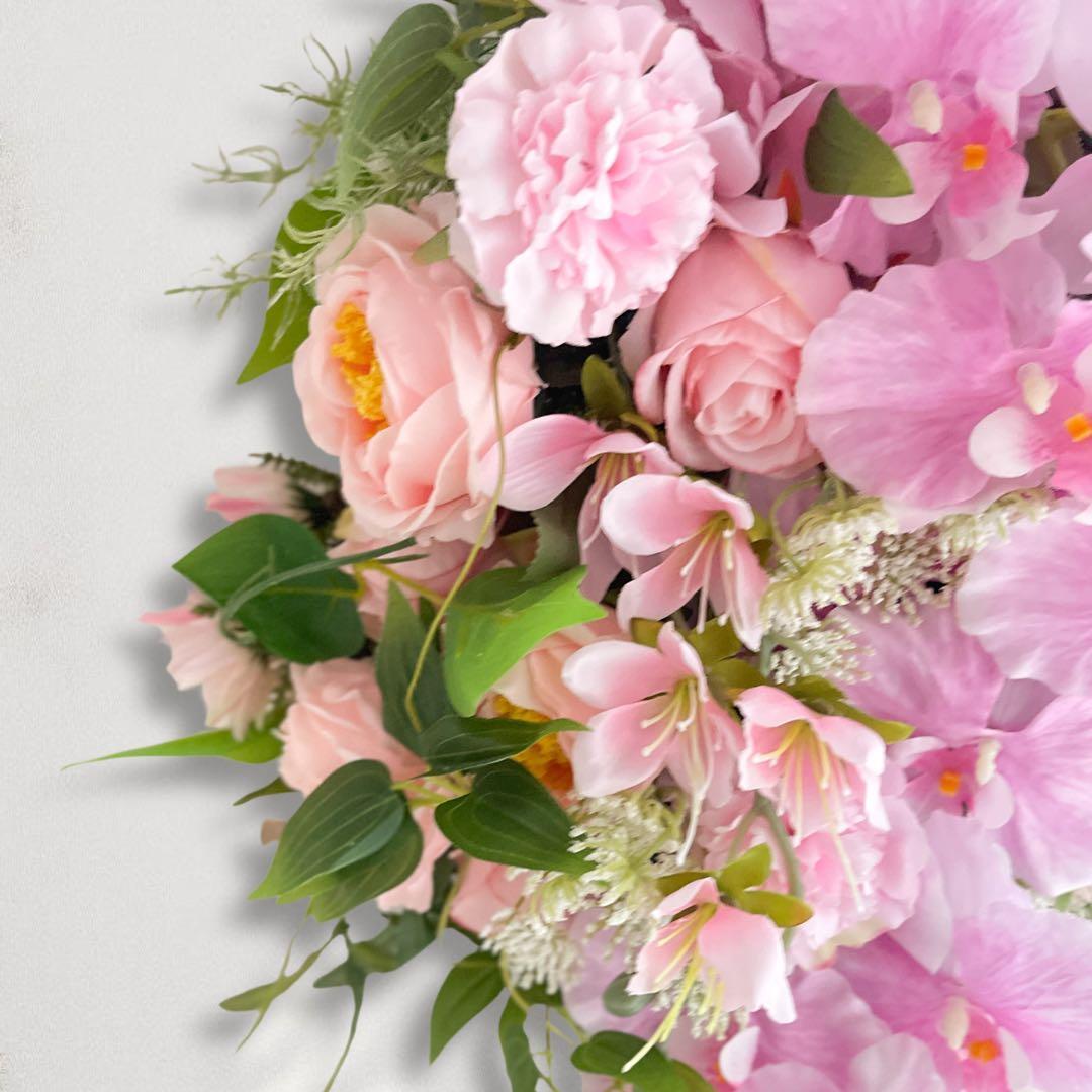 胡蝶蘭とローズのピンクスワッグ|光触媒フラワーリース|開店祝い・新築祝い・お祝い