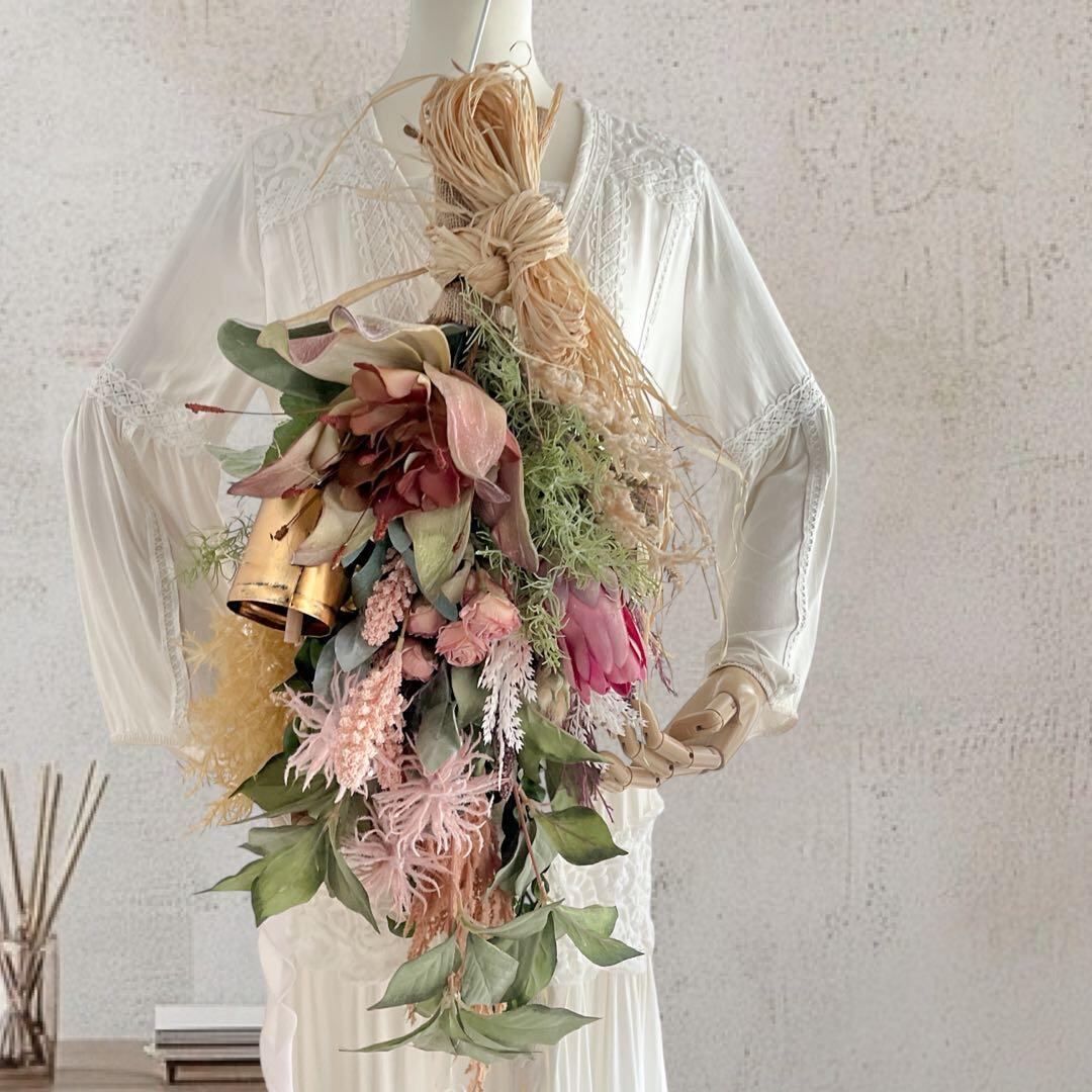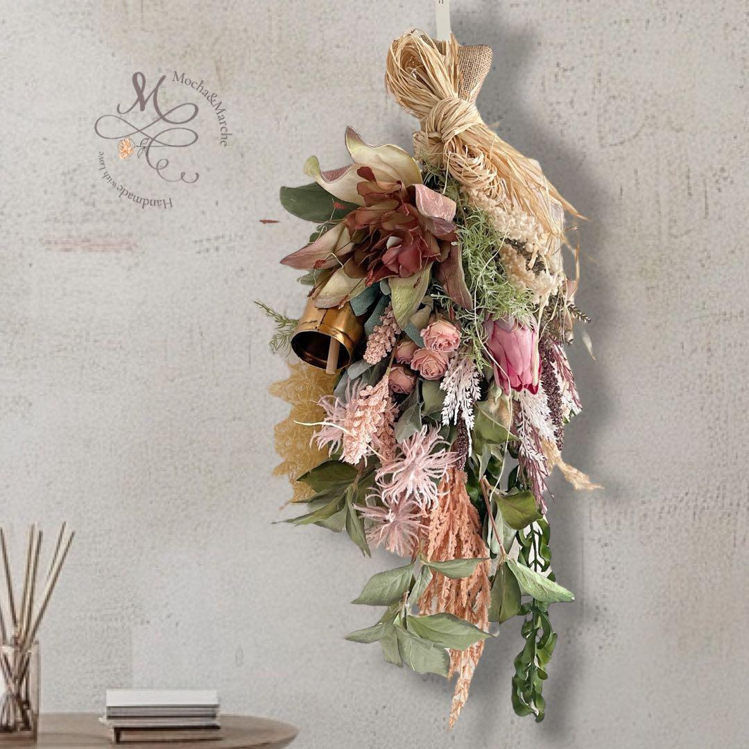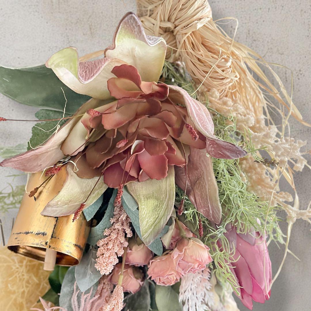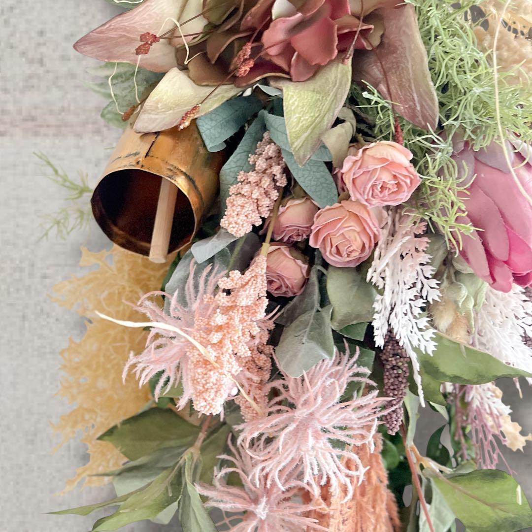 ドライスタイルスワッグ|プロテアとカウベルのナチュラルアレンジ|クリスマスリース アーティフィシャルフラワー