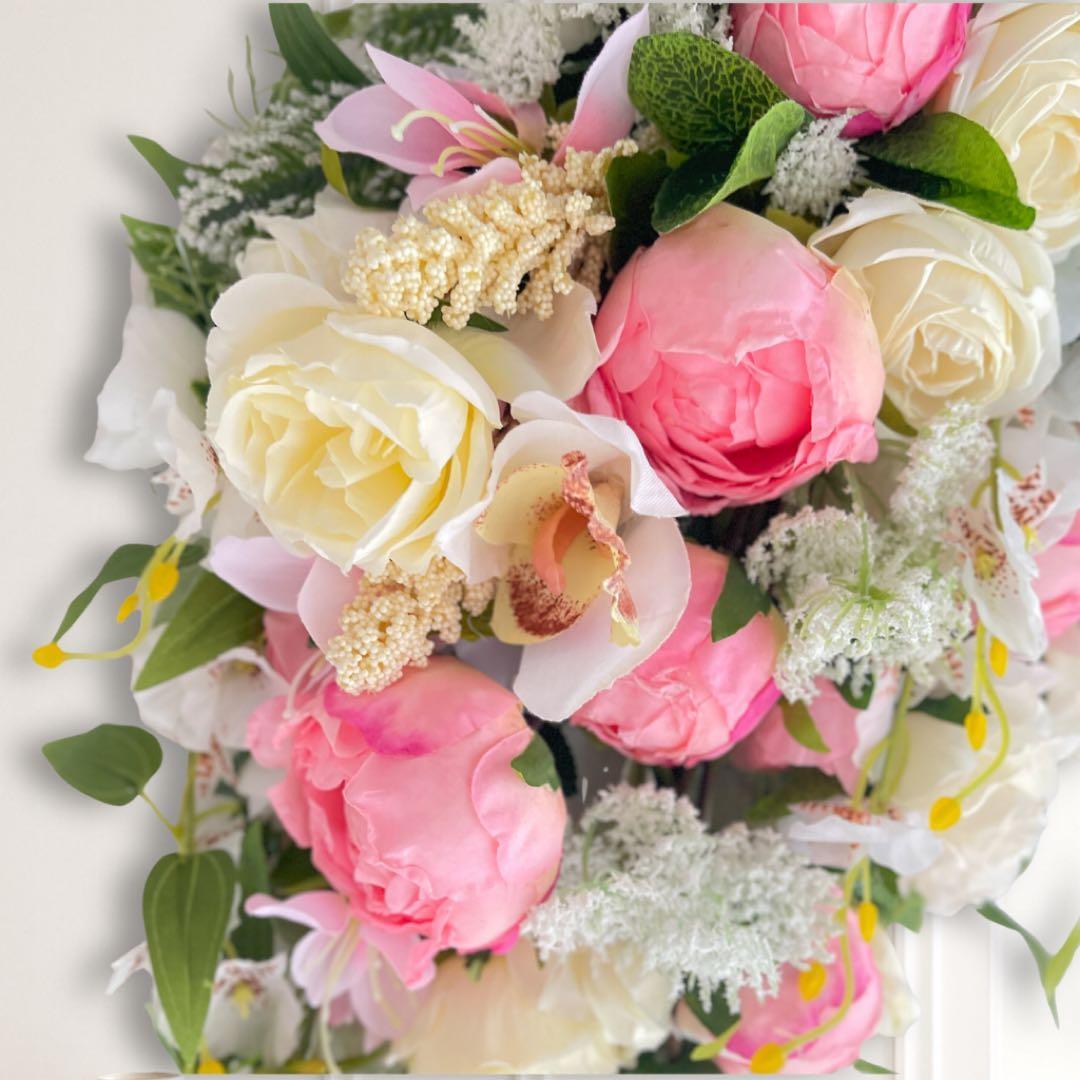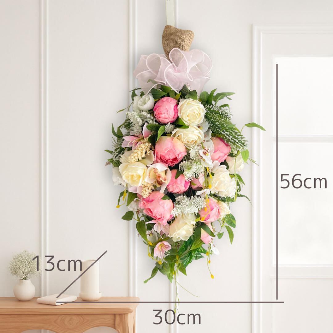 ピンク&ホワイトローズの華やかスワッグ|アーティフィシャルフラワーギフト 造花 アーティフィシャルフラワー